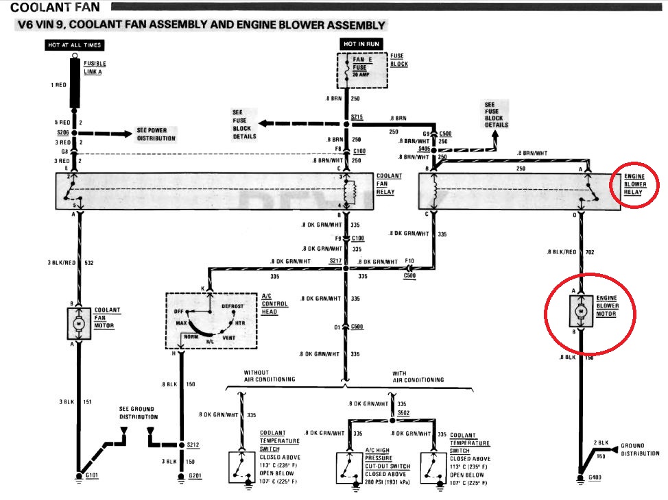 Mine has never turned on during full warmups in the garage, I've ordered up a 'working' one to include the mount bracket and relay from a CA salvage yard...but where does the damned thing mount? I've been through my Parts and Illustrations Catalog about 5 times and can't find it. Maybe my dumbass is skipping a page somewhere. I know I could just backtrack from the tubes and tear crap apart, but I like to see what I'm diving into before actually diving. Thanks.