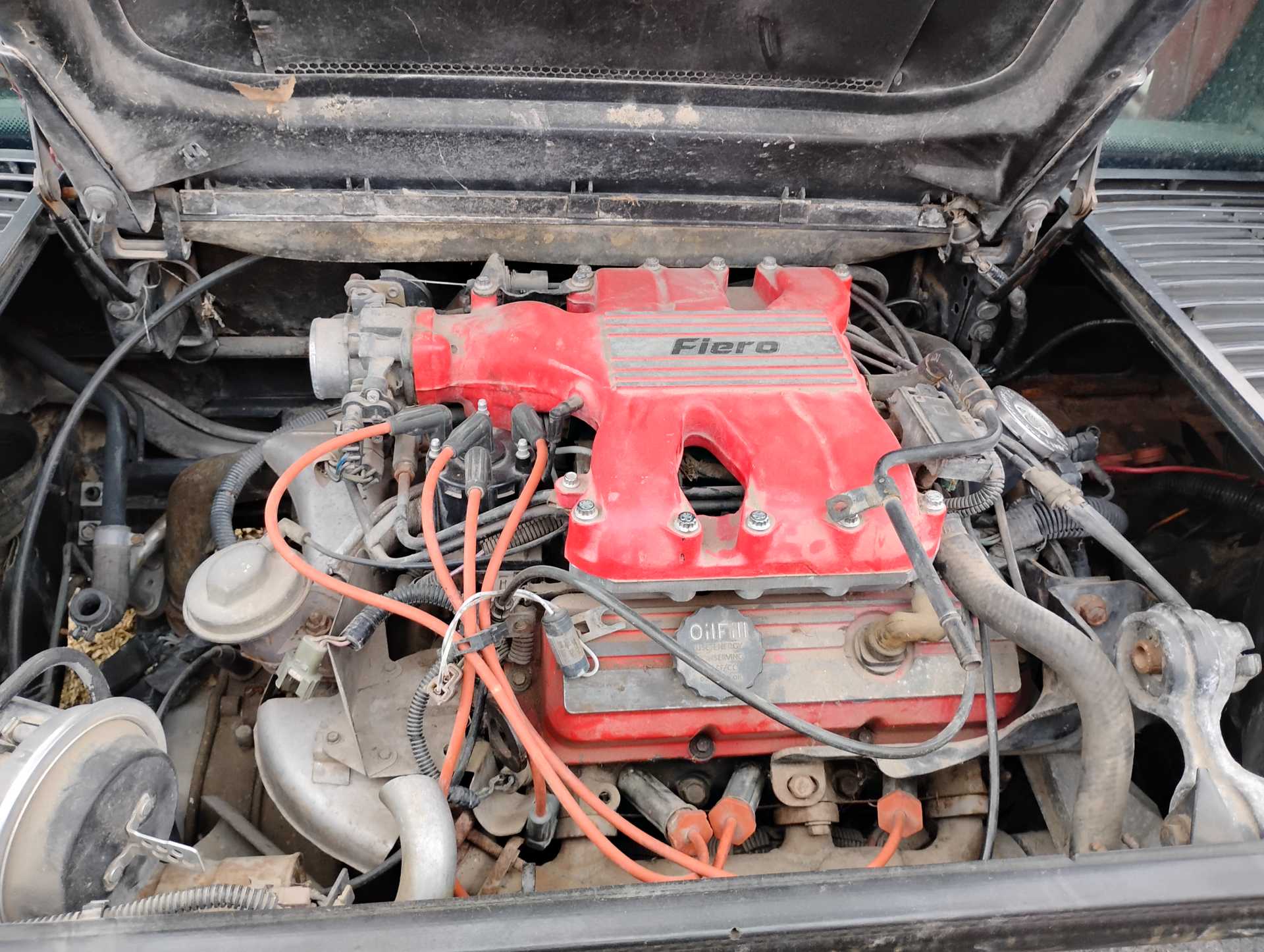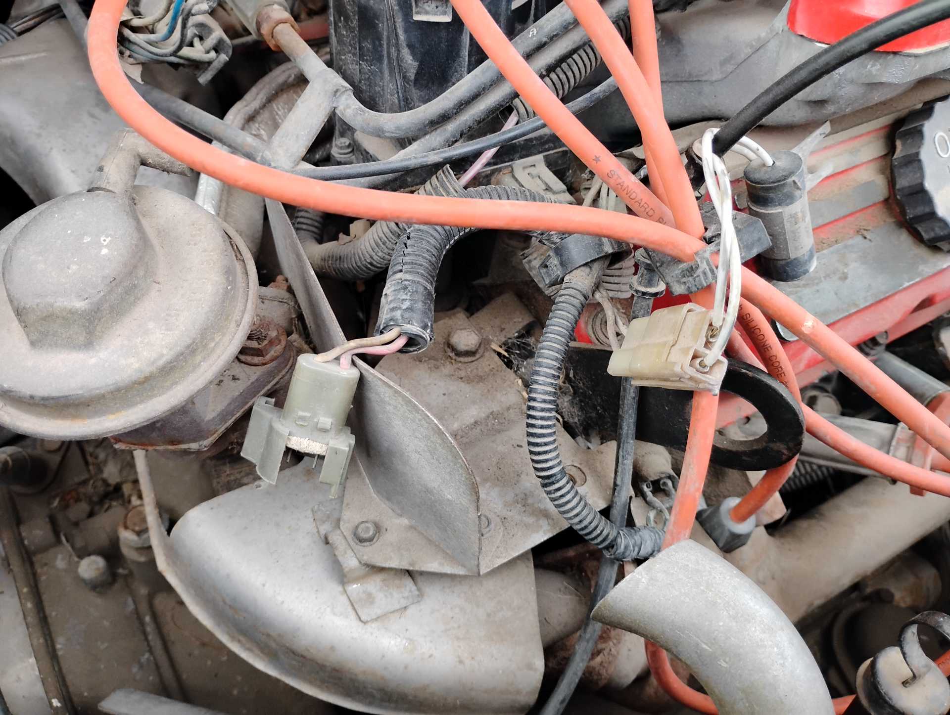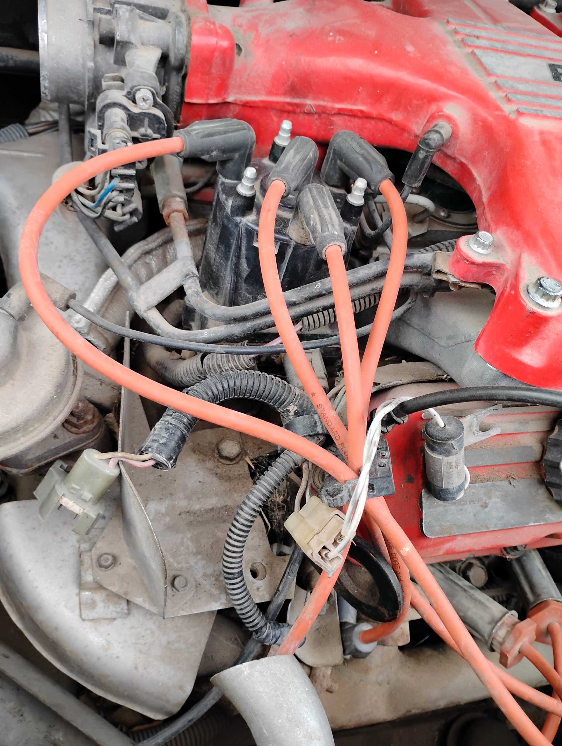 Fieroguru hit the nail on the head. Looks like a big project ahead. The first step should probably be replacing the coil, ignition wires, distributor cap/rotor and reconnecting the fuel and vacuum lines.. Everything must be routed and connected properly. Much work and some parts will be needed to get that engine started and running. Maybe mostly top side work but there are many areas that need attention. You seem to have acquired this car from a rather poor mechanic (or prior owner) but with time and work most anything can be fixed. The repairs can be made with new or if on a low budget, good used parts. You will need a repair manual that will instruct you on how to connect and test everything. Many of us here have started with "project cars" so the info here is usually very helpful. Good luck on the project.