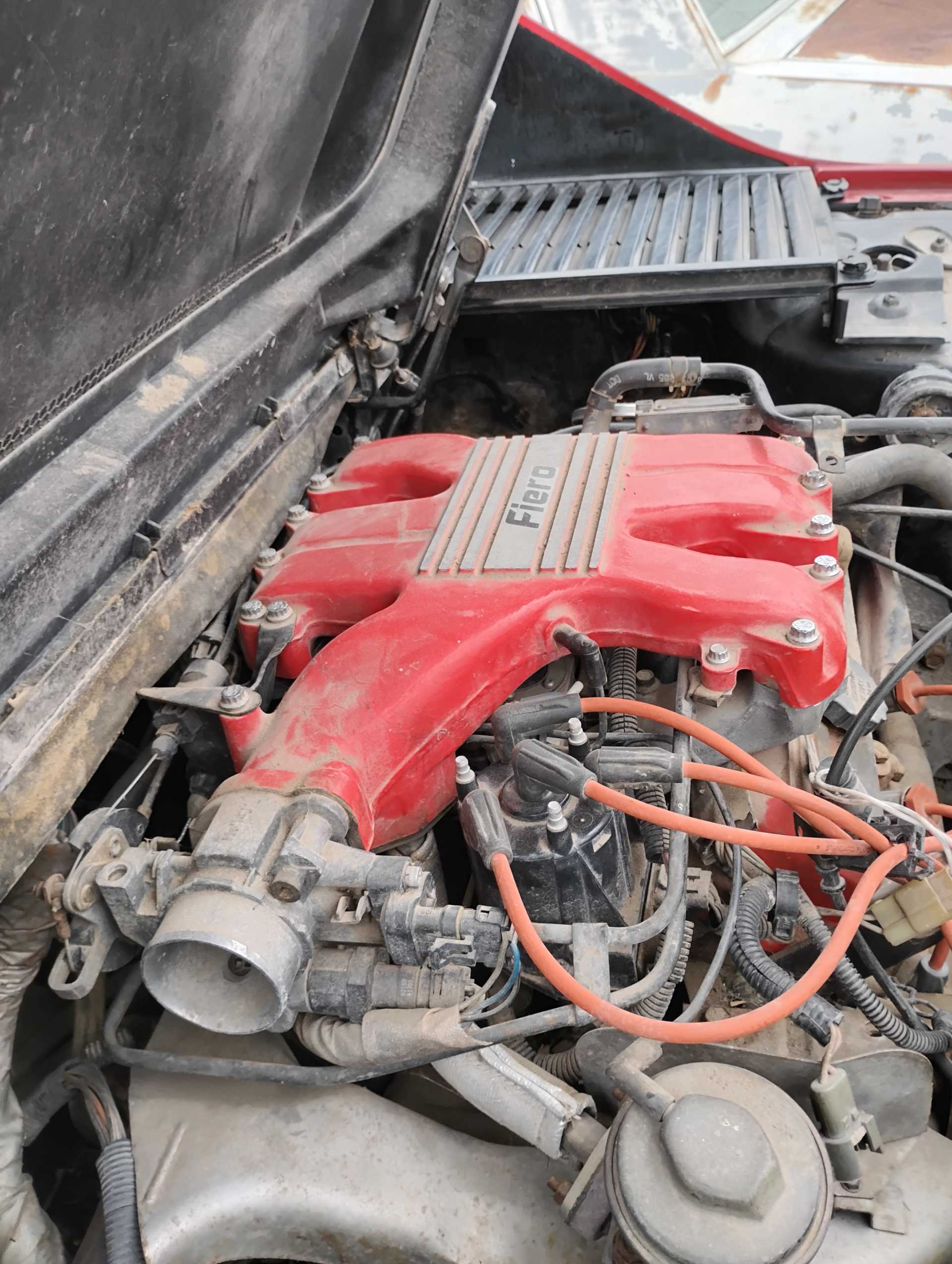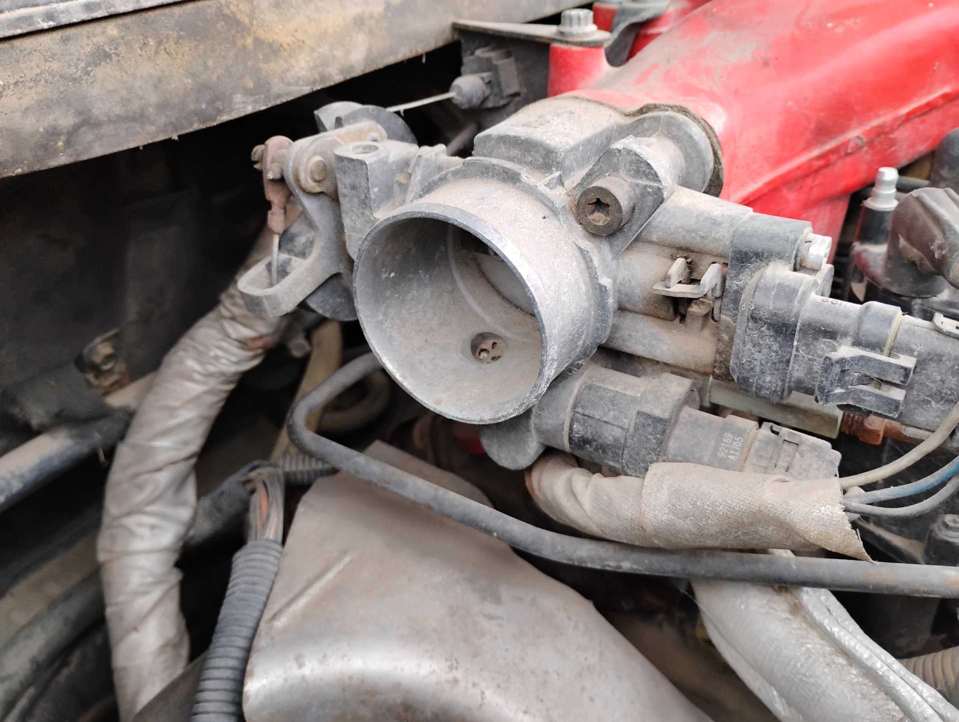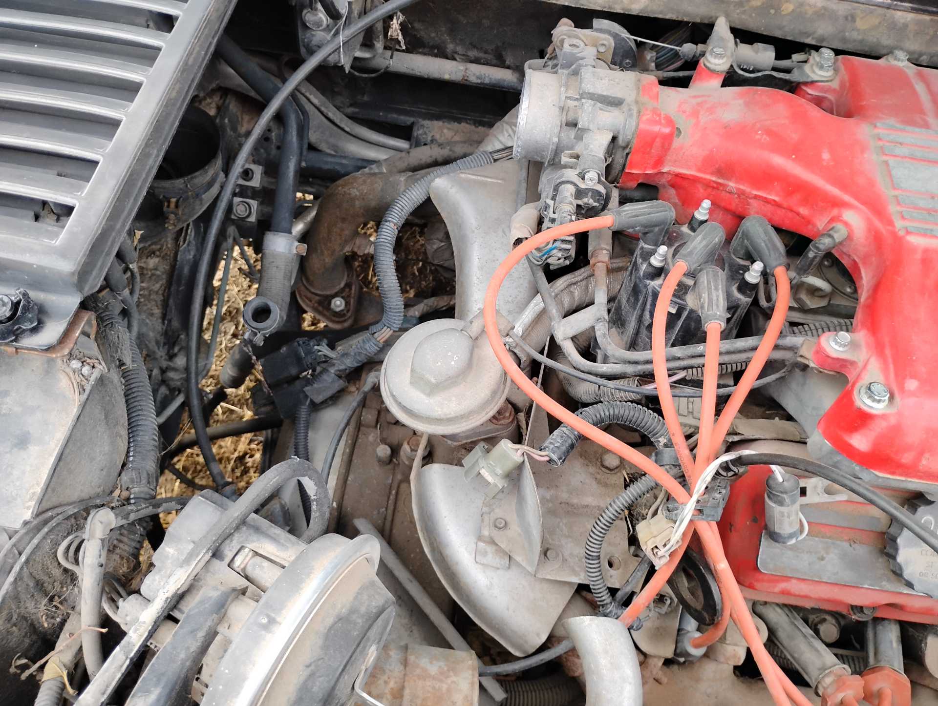 Missing air filter housing Missing air filter to throttle body hose Missing A/C hoses A/C & Fuel Pump Relay harness not attached to firewall Missing vac lines to charcoal canister at canister end Missing cruise cable (I think it is the one in the wrong position & hanging down on the throttle body) Missing ignition coil Mud Dauber in IAC port Missing 3 spark plugs wires TPS lever looks like it is in the wrong position TV cable is not routed properly Air tubes for coil and alternator missing Missing vac lines to charcoal canister at intake end Missing/broken exhaust manifold bolts Dogbone disconnected Heater hose to water pump disconnected and hose looks to be too short Missing battery Fuel lines to filter and tank disconnected and in wrong position