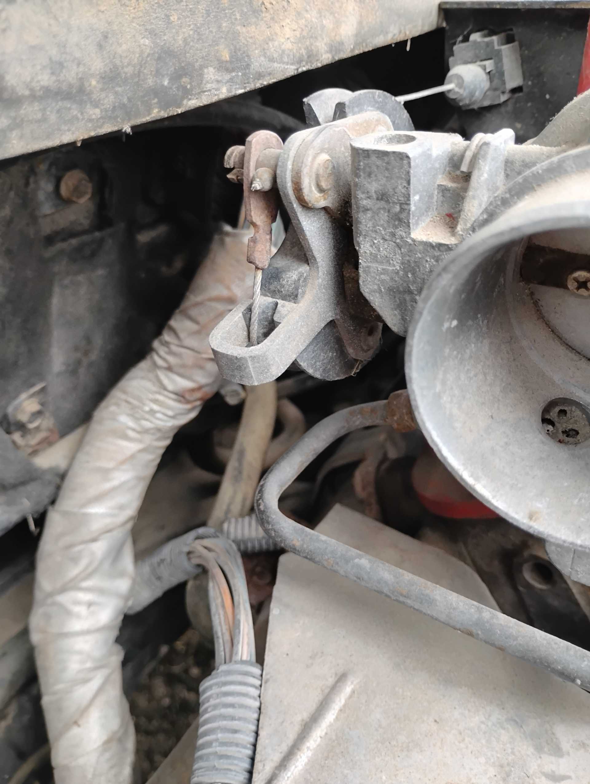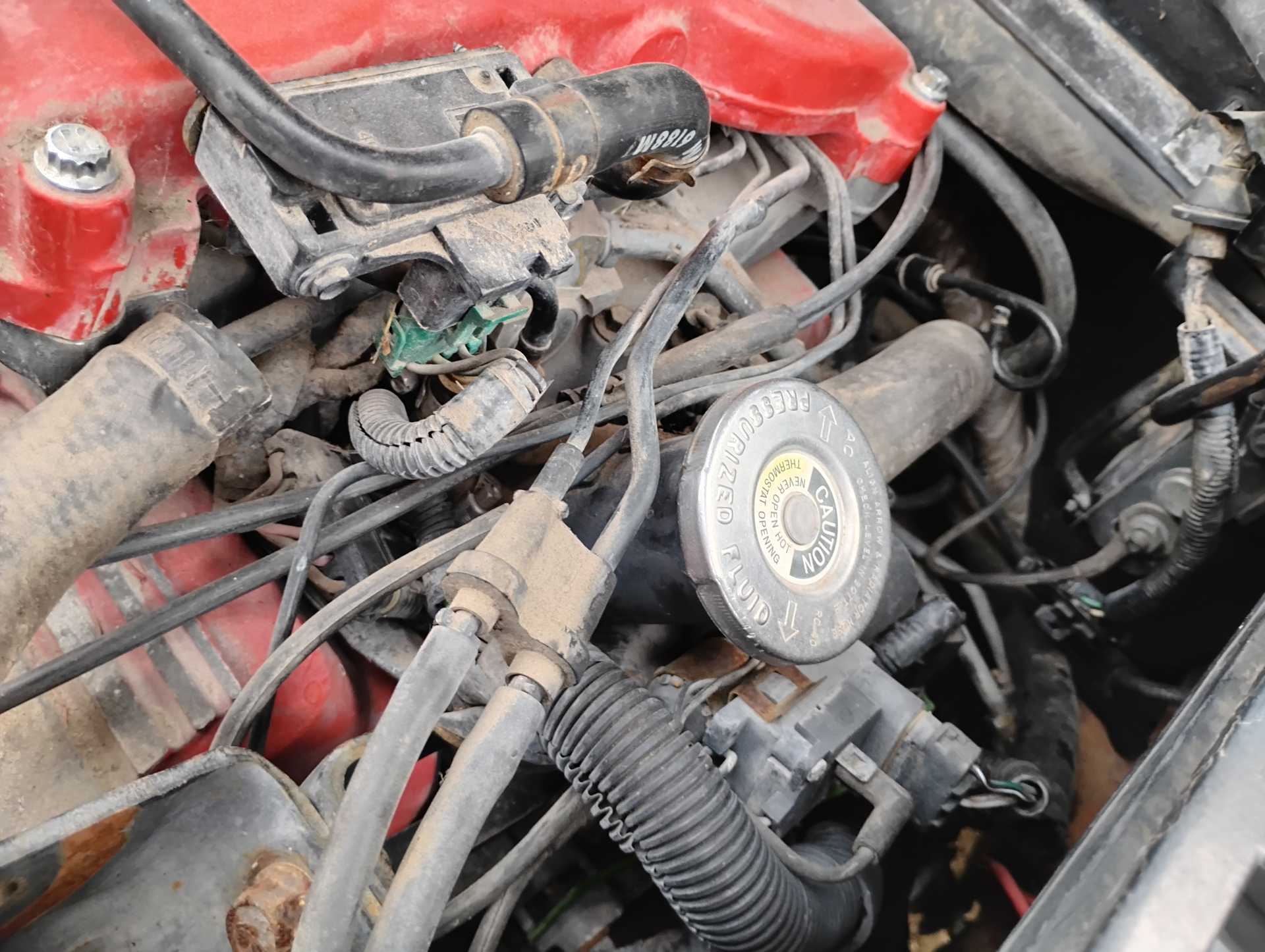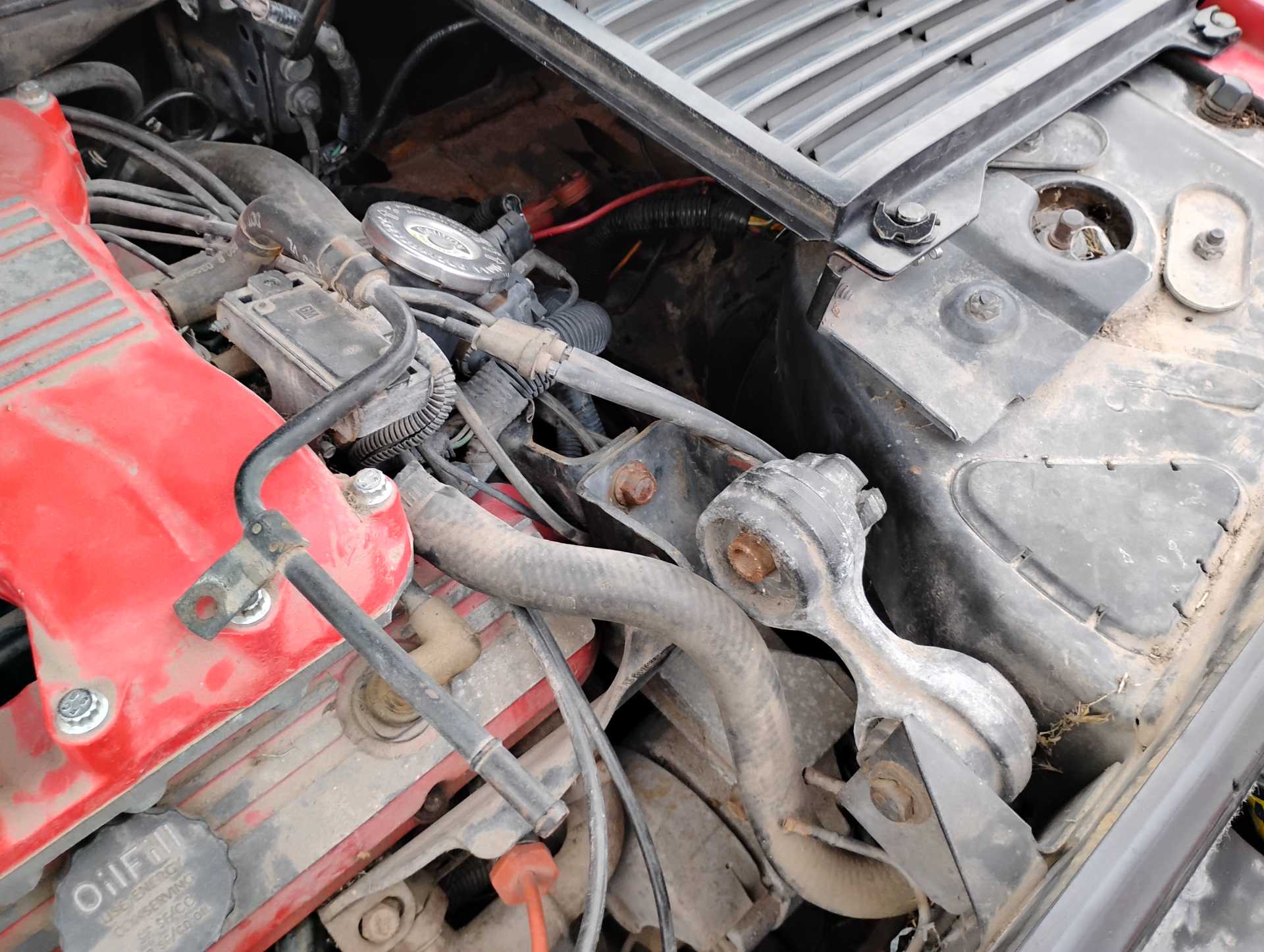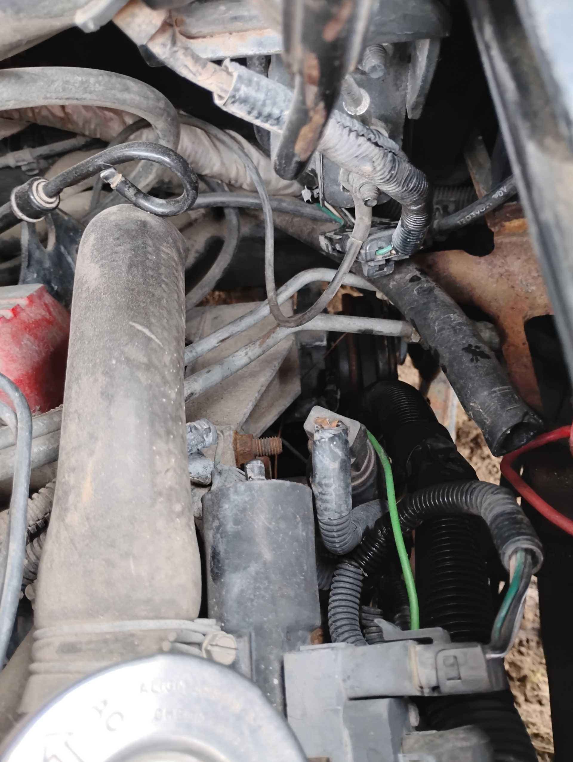 Missing air filter housing Missing air filter to throttle body hose Missing A/C hoses A/C & Fuel Pump Relay harness not attached to firewall Missing vac lines to charcoal canister at canister end Missing cruise cable (I think it is the one in the wrong position & hanging down on the throttle body) Missing ignition coil Mud Dauber in IAC port Missing 3 spark plugs wires TPS lever looks like it is in the wrong position TV cable is not routed properly Air tubes for coil and alternator missing Missing vac lines to charcoal canister at intake end Missing/broken exhaust manifold bolts Dogbone disconnected Heater hose to water pump disconnected and hose looks to be too short Missing battery Fuel lines to filter and tank disconnected and in wrong position