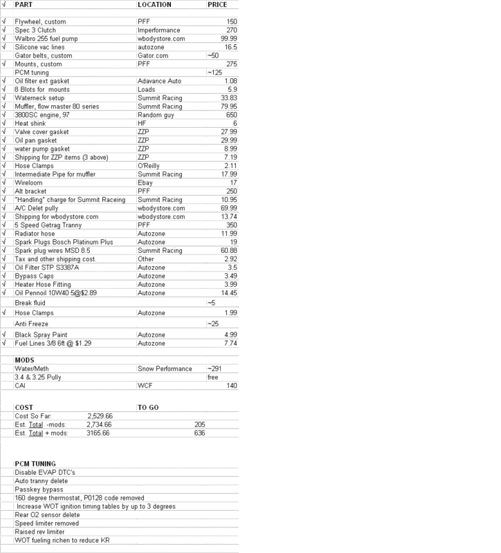 Pretty much got all the parts I need to finish the swap, just waiting on shipping. Heres the updated list of parts