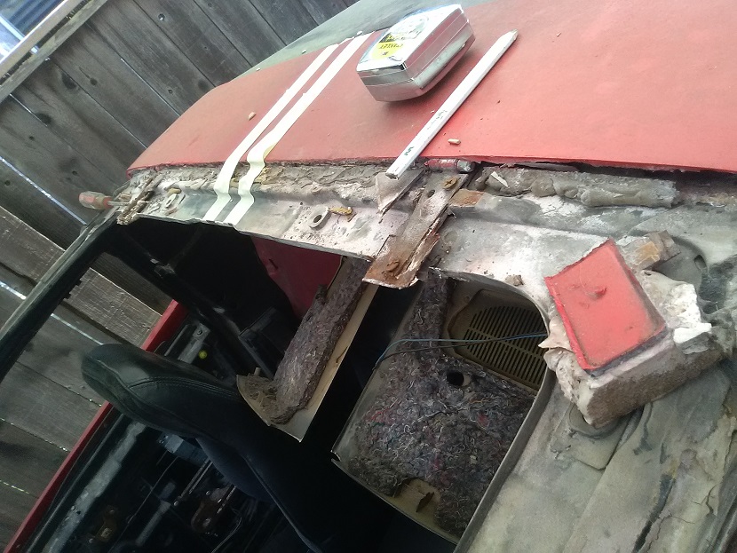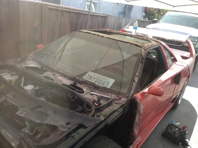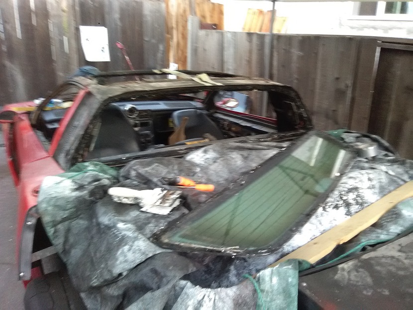 Made some time to work on the car yesterday n today. works been insanely busy n back been bugging me. Been tossing the idea around of making the roof proportional to the rest of the car forever now. I started pulling the car apart yesterday n figure my way along. Narrow the top by 4 inches and Going to chop the back a few inches so it slopes down, reinforce it, then adjust the fiberglass to fit. Making a polycarb windshield and back window. chopping the door panels so the side windows swing in to match the door opening. Rotating the window assy to give me more rake on the front and match the top down slope. Stripping the car was done in a few hours, spend an insane amount of time pulling the back window. more insanity to come