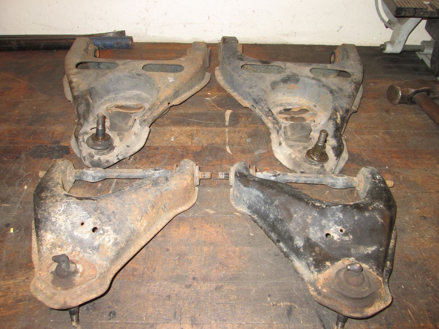 For the upper control arms, I will just heat them till they slide out on their own as the cross shaft doesn't leave much room to press them out.