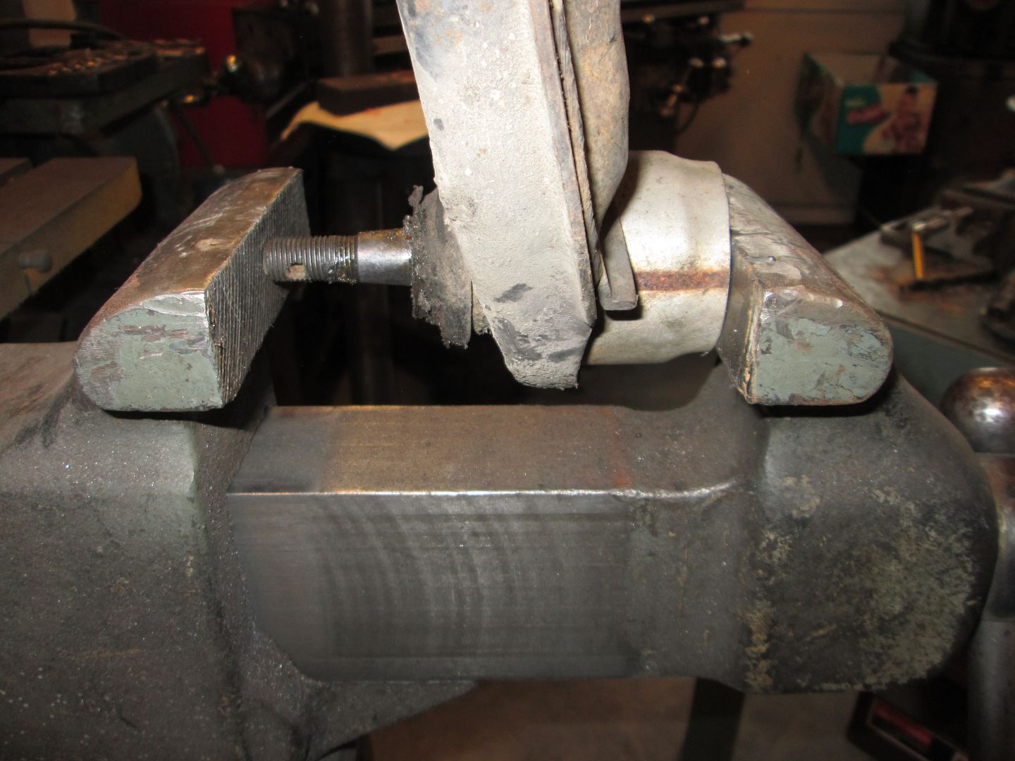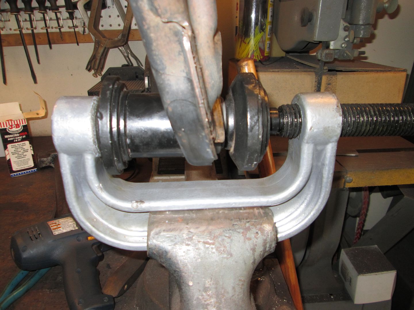 To press the lower ball joints out, I used a short section of exhaust pipe and my vice: