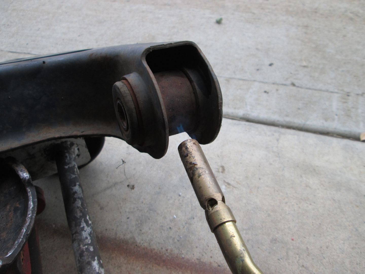 | quote | Originally posted by Will: My experience has been that if you keep the heat on it, the bushing walks itself right out of the sleeve and you don't have to push on it at all. |