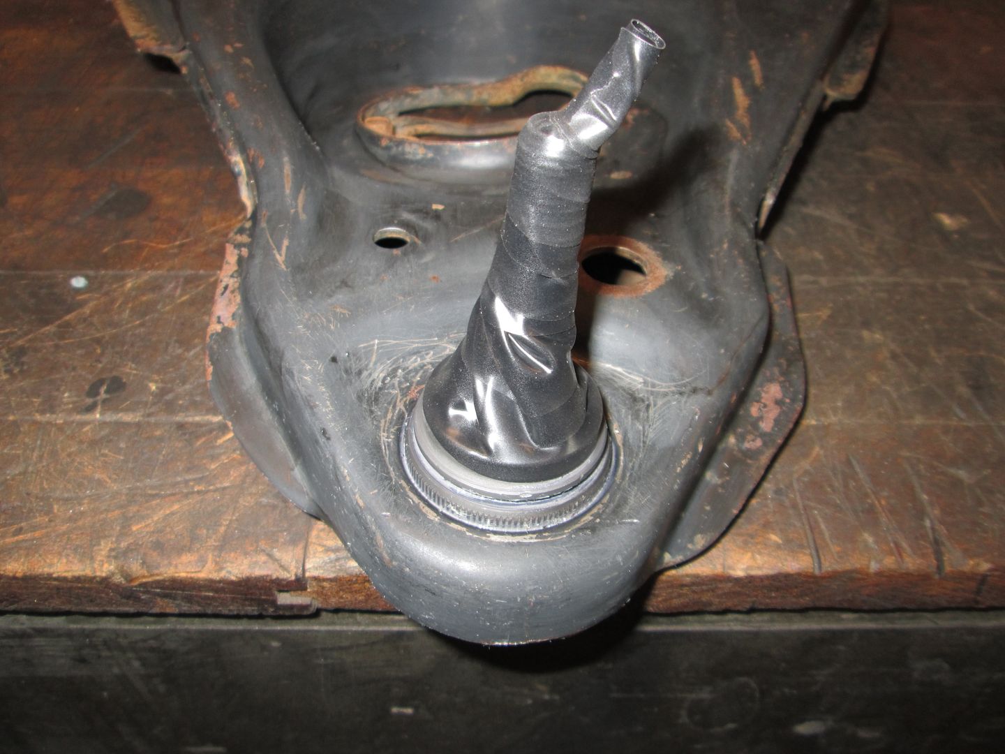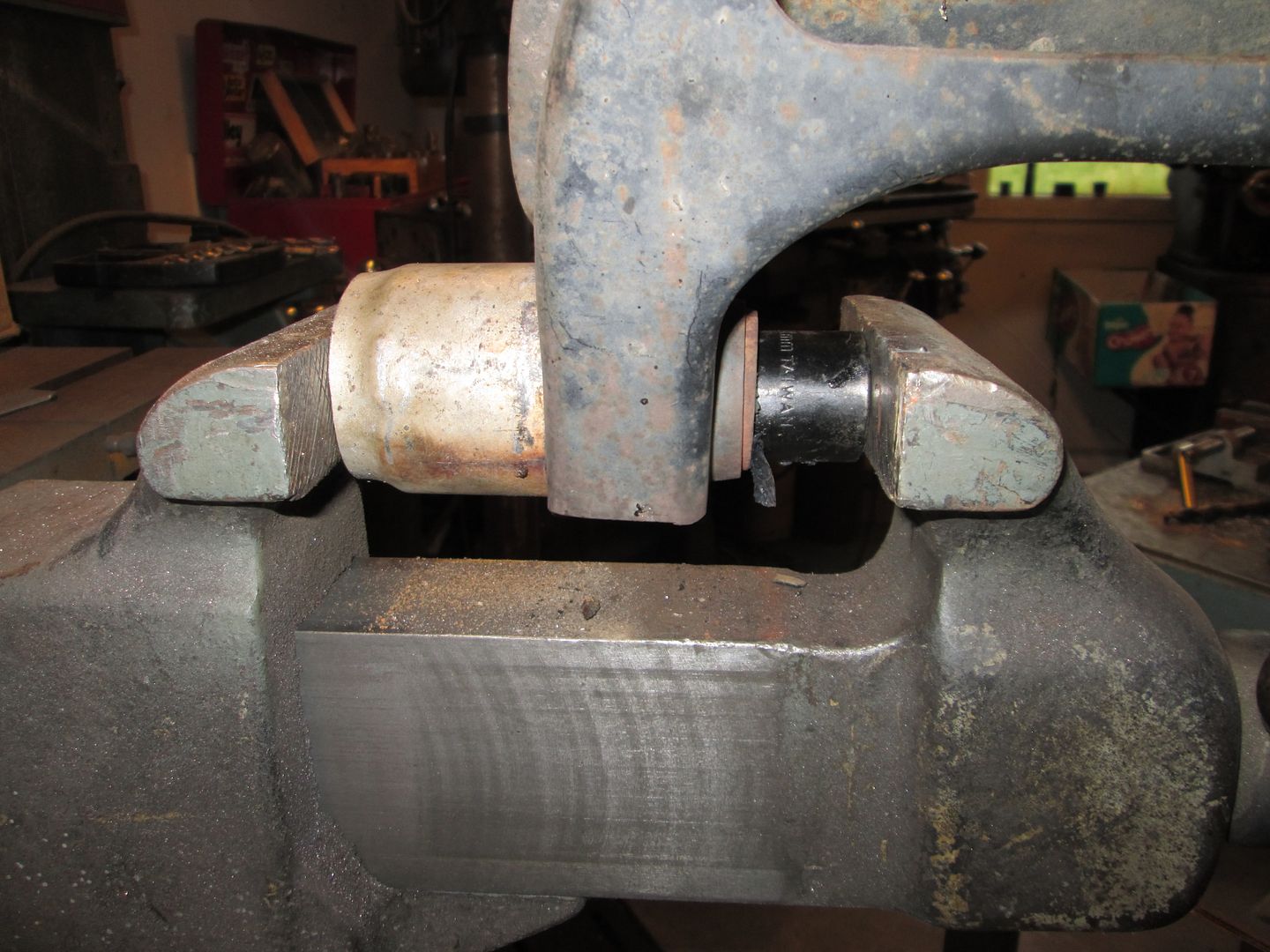 Then greased up the rack shaft, turned it so it was most of the way to the DS, slid the brass bushing into place, drilled a couple of holes and riveted it in place.