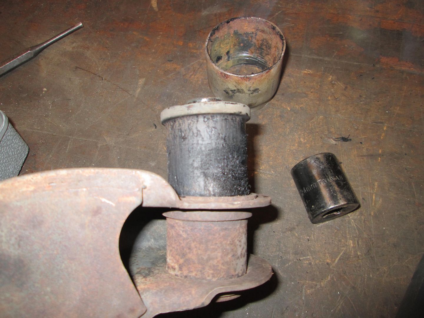The bushing sleeves were stuck, so I took a chisel and used it to open the seam and spread the sleeve so it would slide off.