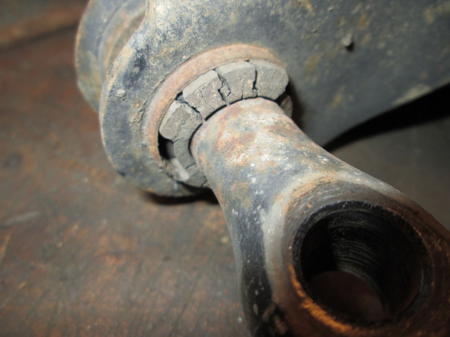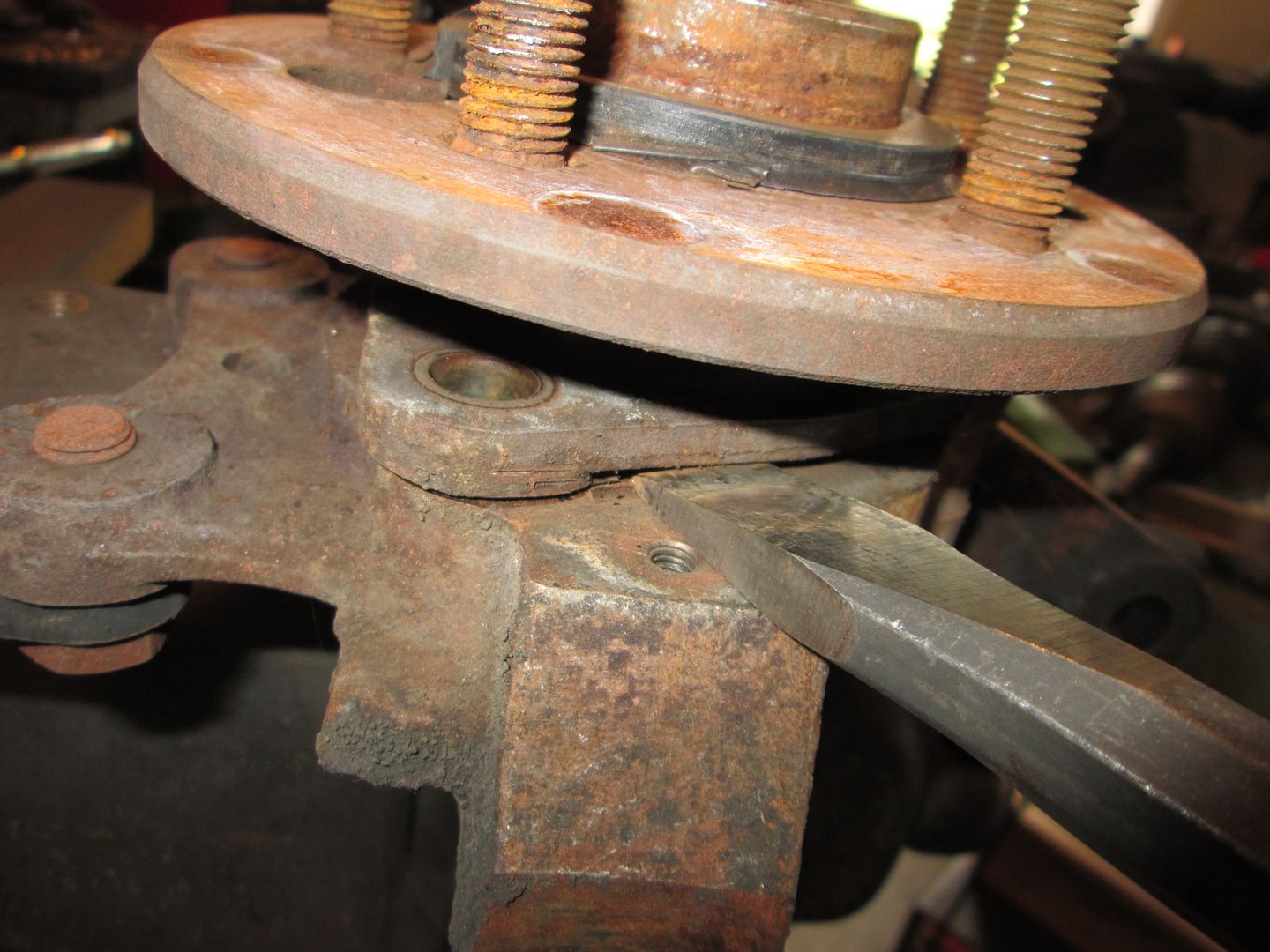Used a chisel to break the bearing free from the upright (notice the gap):
