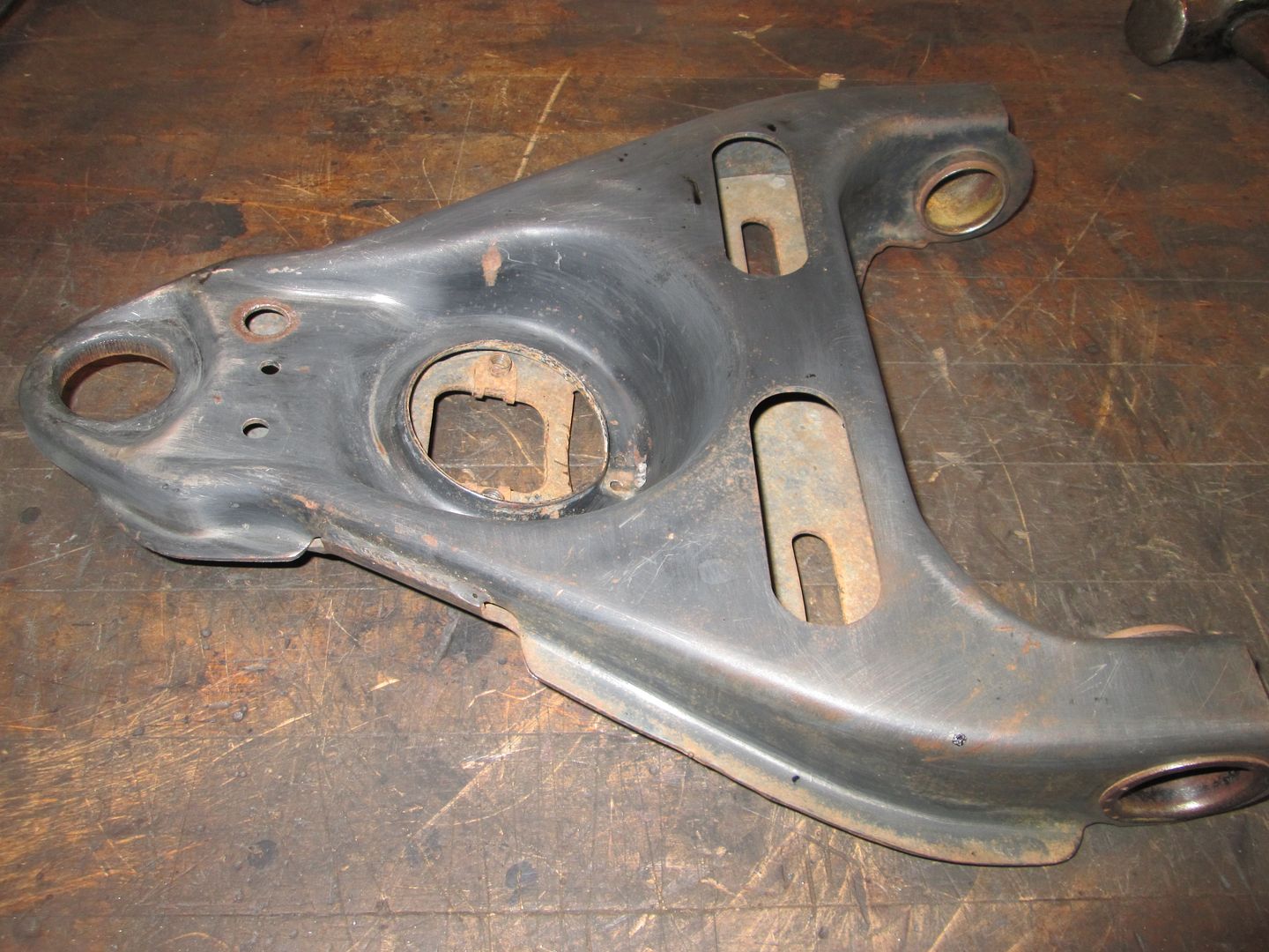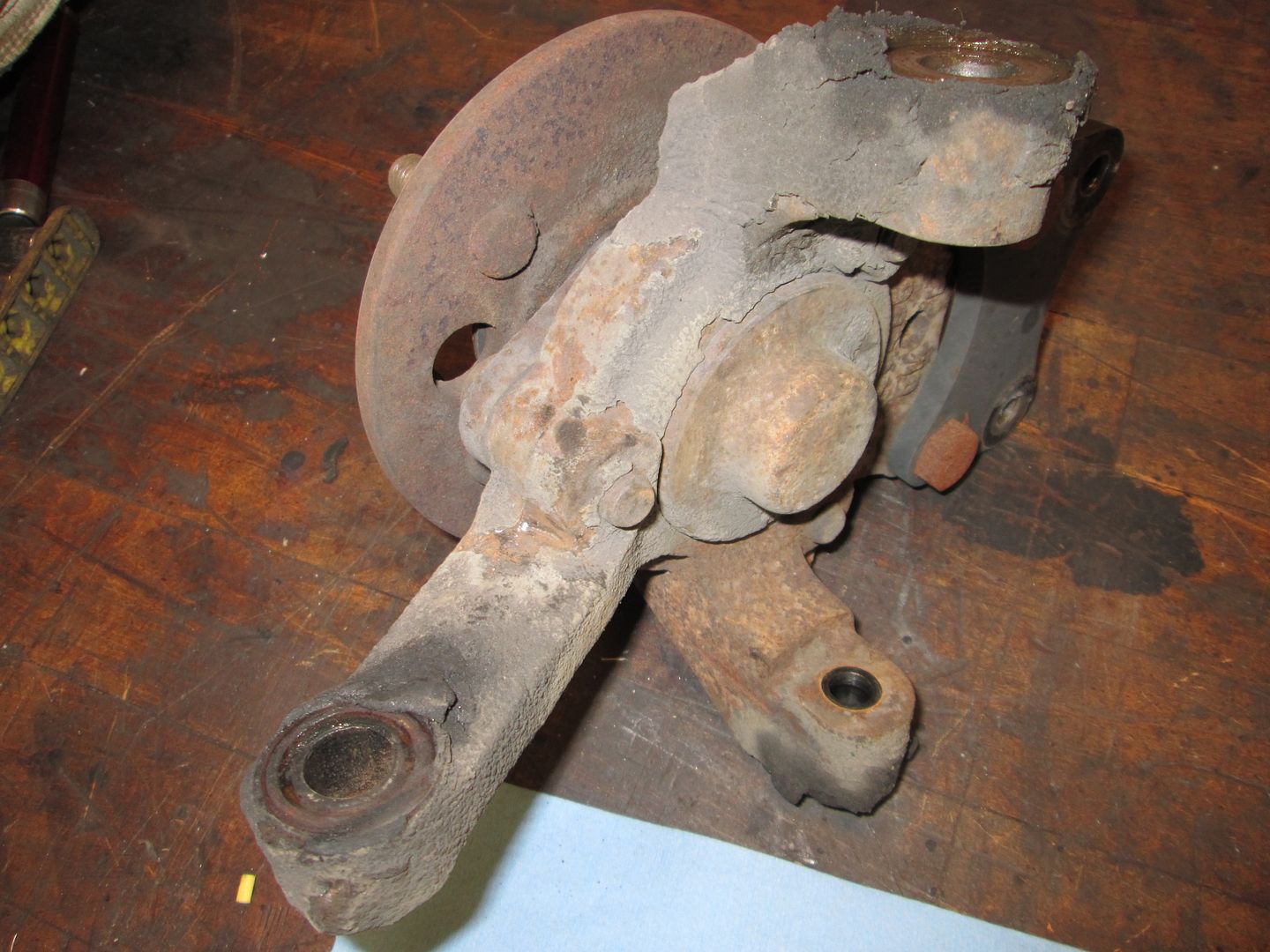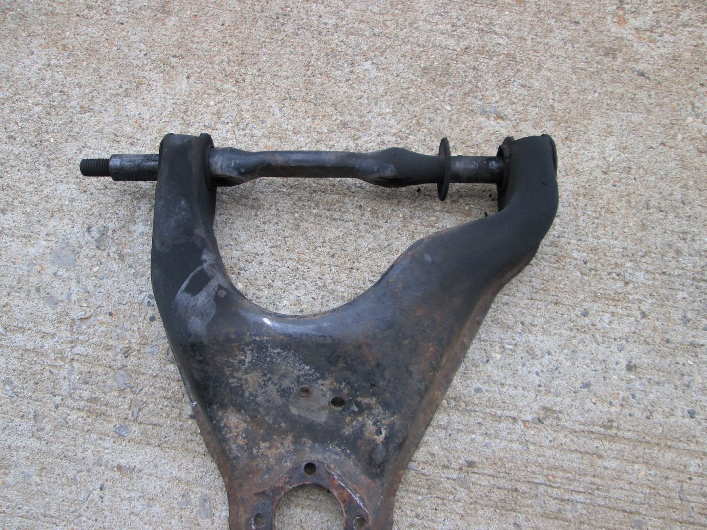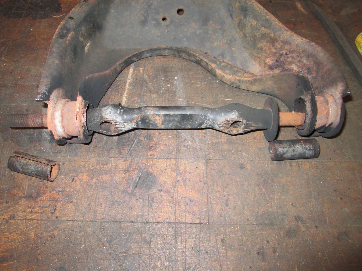 On the upper a-arm, just grind down the tops of the rivets and pop out the ball joint. I ran out of propane before getting the rubber bushings off. So this is how I left it for this evening: