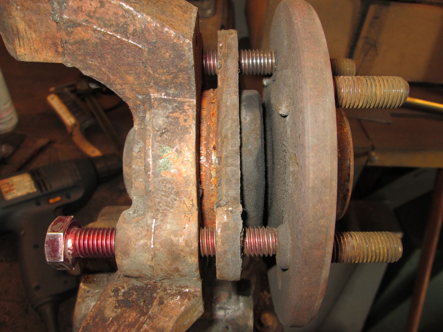Lots of scraping, wiring brushing, cleaning, oven time, and placed the wheel bearing face on the belt sander: