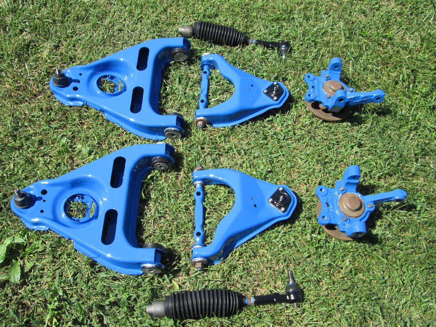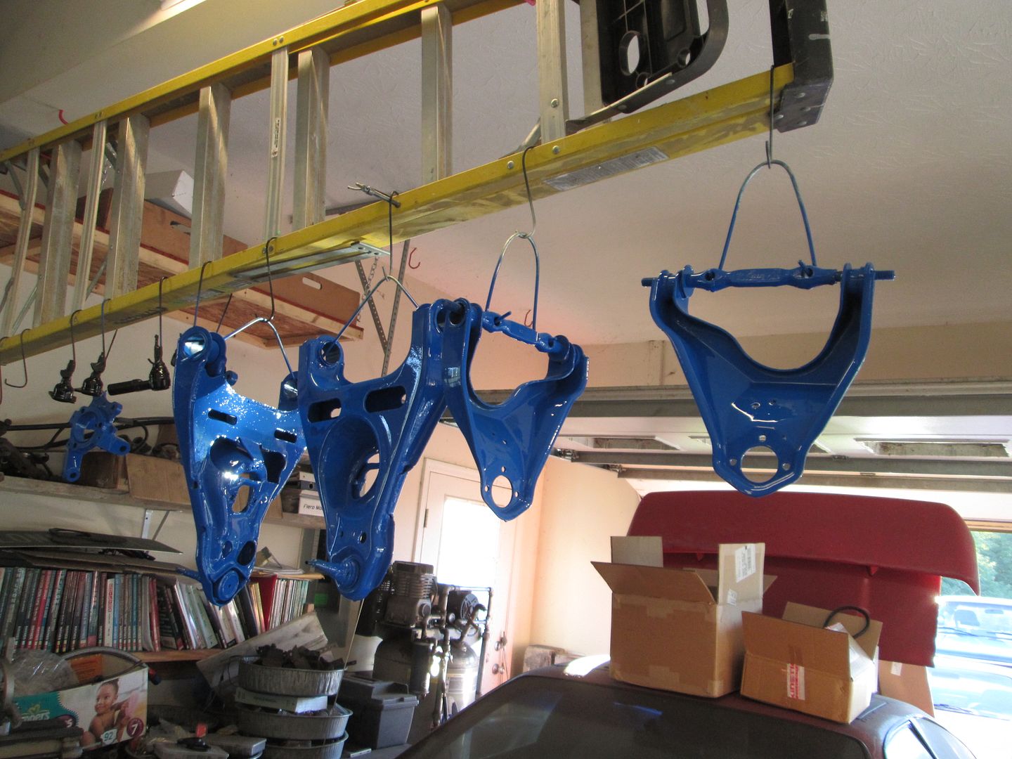Looking great! For your upper ball joints, it looks like you unscrewed the grease fittings. I thought maybe you were going to put tape over that whole face where the grease fitting goes, but in the "hanging/drying" pic, it looks like you painted that surface as well without taping it over? Or is it just an illusion, or did you do something else?