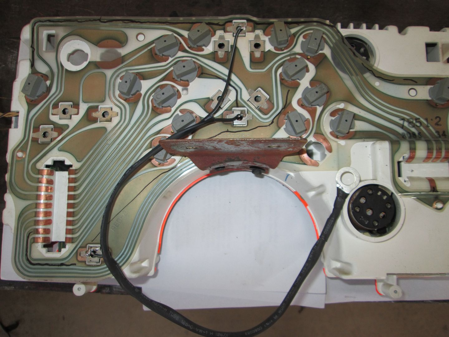 First order of business, was the instrument cluster. The ground circuit is weak in the plastic circuit, so everything works until you turn on the back lighting, then you lose the tach and fuel level, and a couple other interesting things happen. All my spare clusters are buried in storage, so I figured I would run some additional ground wires soldered to the metal terminal plates to help support the ground load. Then these wires will be grounded to one of the bolts on the steering column.