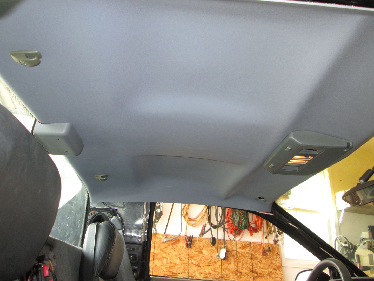 Headliner back in, but I am waiting on new clips from Fiero Store to install the A & B pillar trim and some new sunvisors (all of my spare ones are buried somewhere...)
