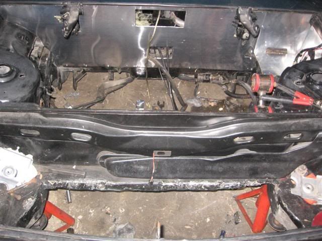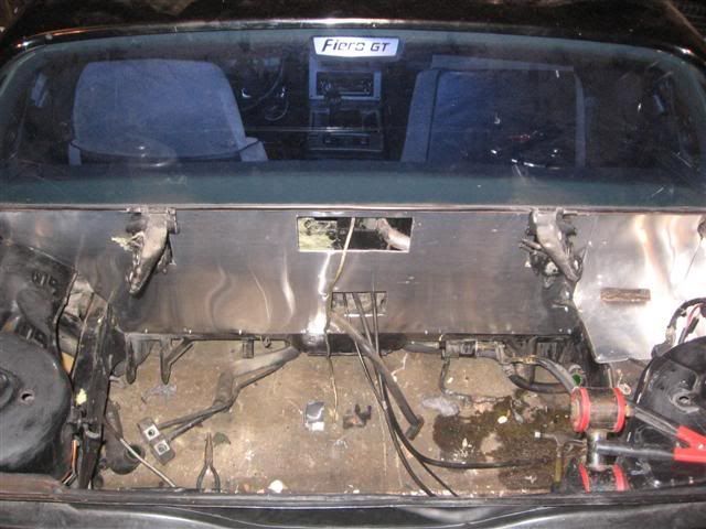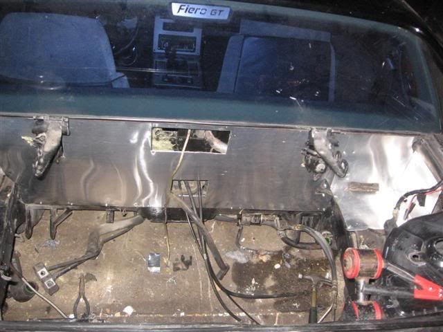 FIREWALL I know it looks bad right now, but it won't Want the engine bay to look clean and hide as much stuff as I can. I ended up cutting the trunk out, its overrated. Plus it wasn't in the best of shape. Going to paint it up tomorrow, and finish it up. Heres what I got done on it tonight: