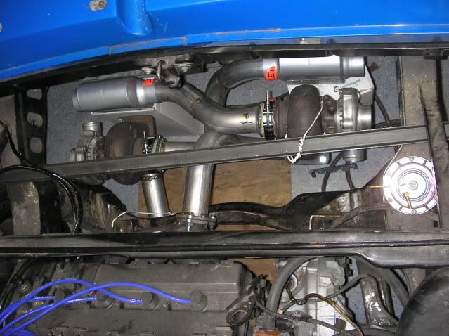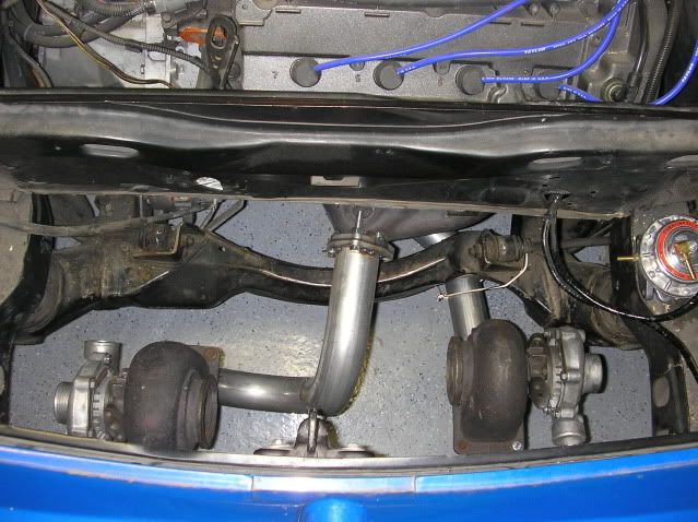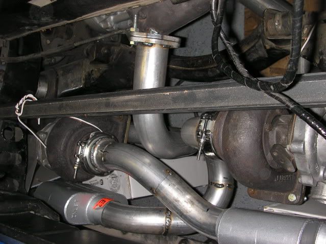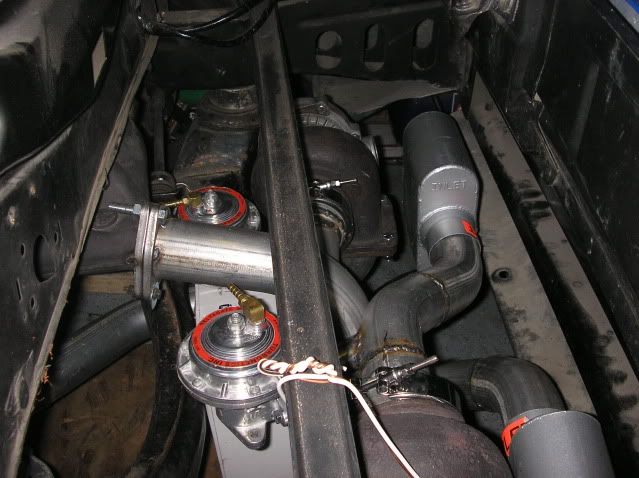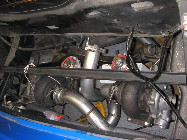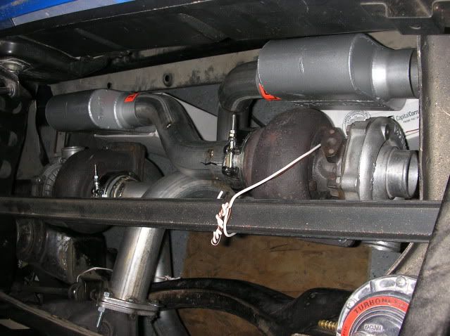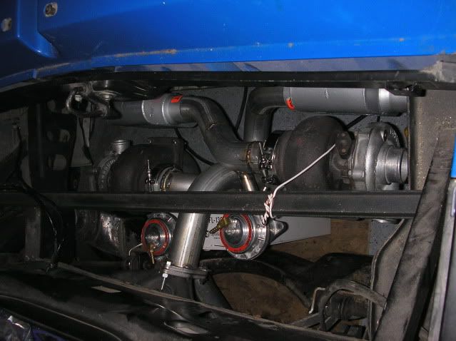 I thought I saw the dump plumbed on the one, but couldn't tell completely if that was what it was. Dumps or plumbed it should still sound great. I know the headers aren't necessary, but down the road with the extent of the customness of the turbo set up some headers would just be a great touch.