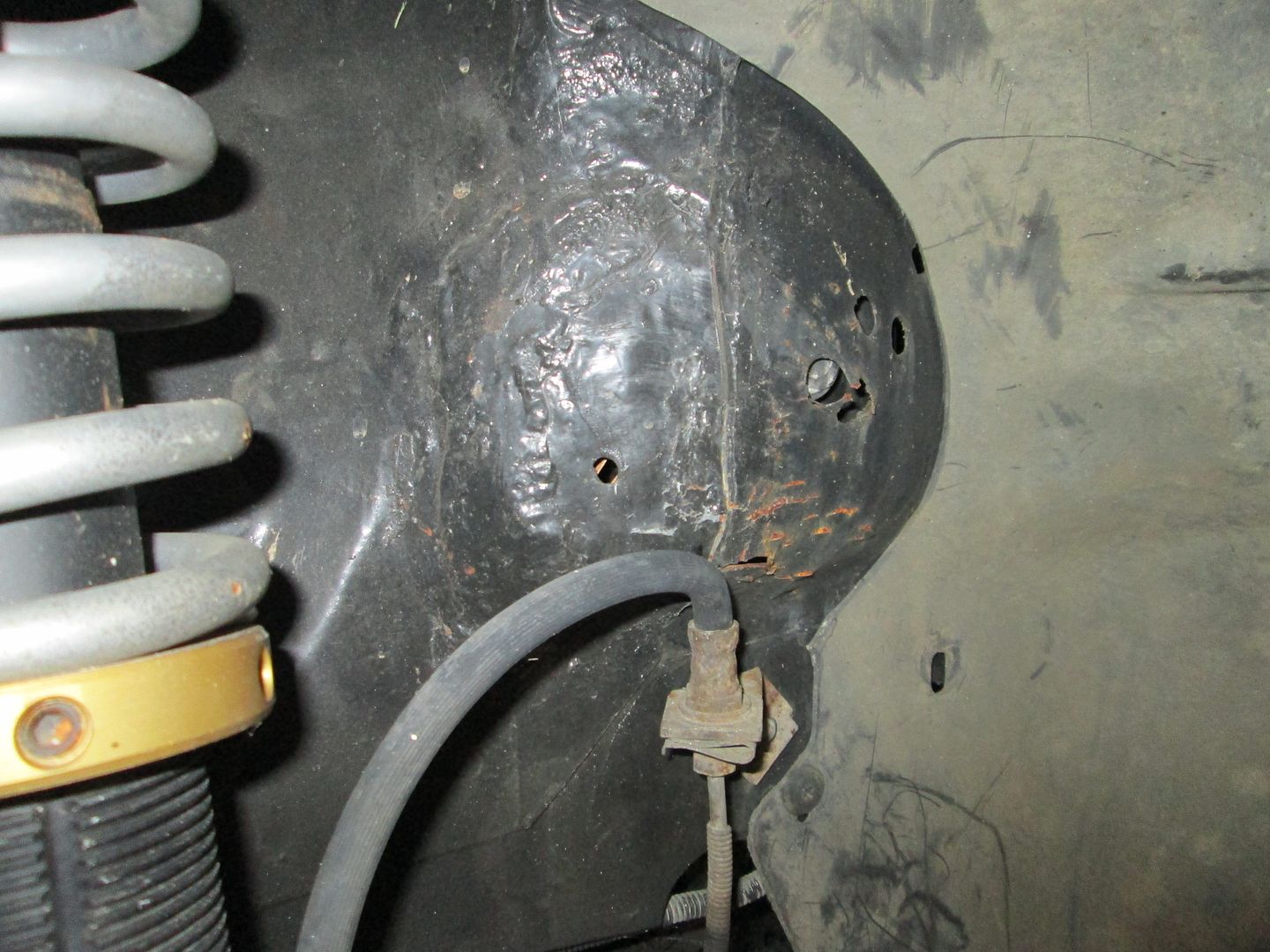 I debated on asking Dan to put it back on there when I got the belt back on (he was nice enough to loan me a floor jack, stand, wrench, and pry bar), so Scott could bump the timing again, but he was already occupied with something in the build-side of his shop when I was finished.