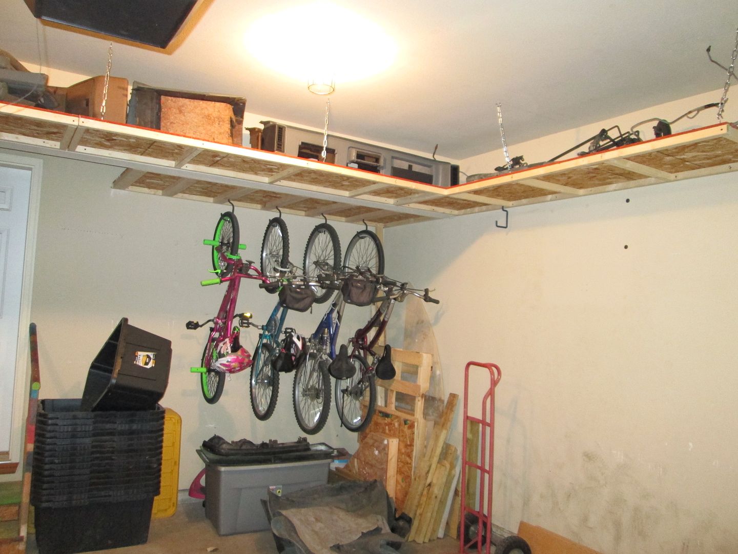 I also like bright work areas, so the garage got a super simple lighting upgrade. Since the fixtures were single bulb ceramic and rated for a lot more than 100W, I found some 200W bulbs that put out over 3500 lumens. So for about $12 the main garage bay is very bright! Many of the after pic where shot at night with the doors down.
