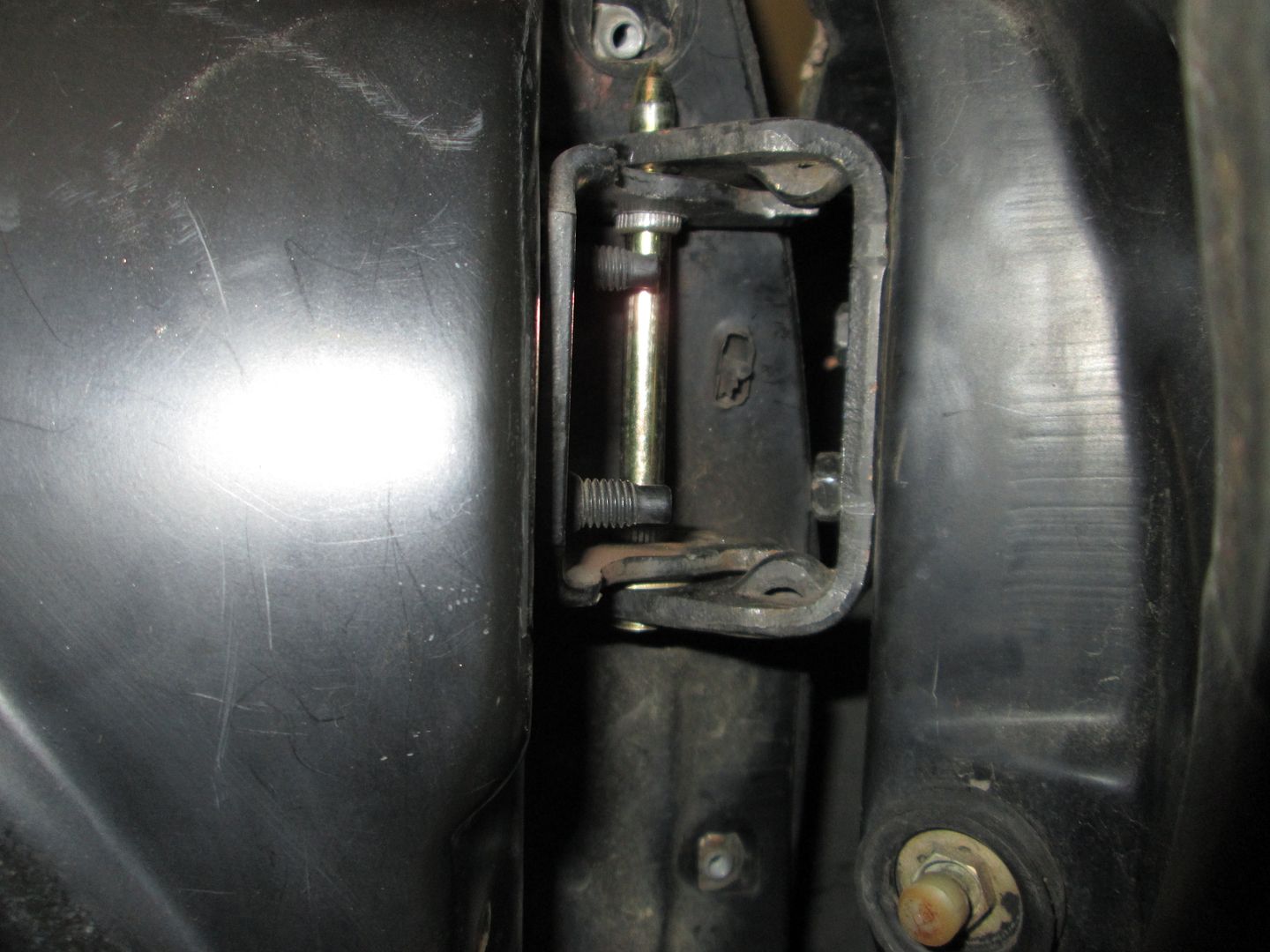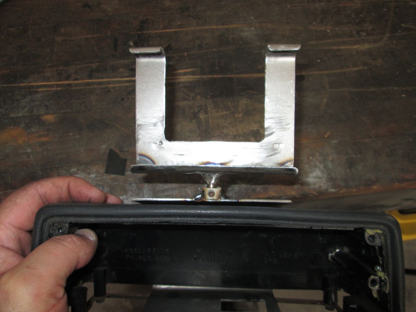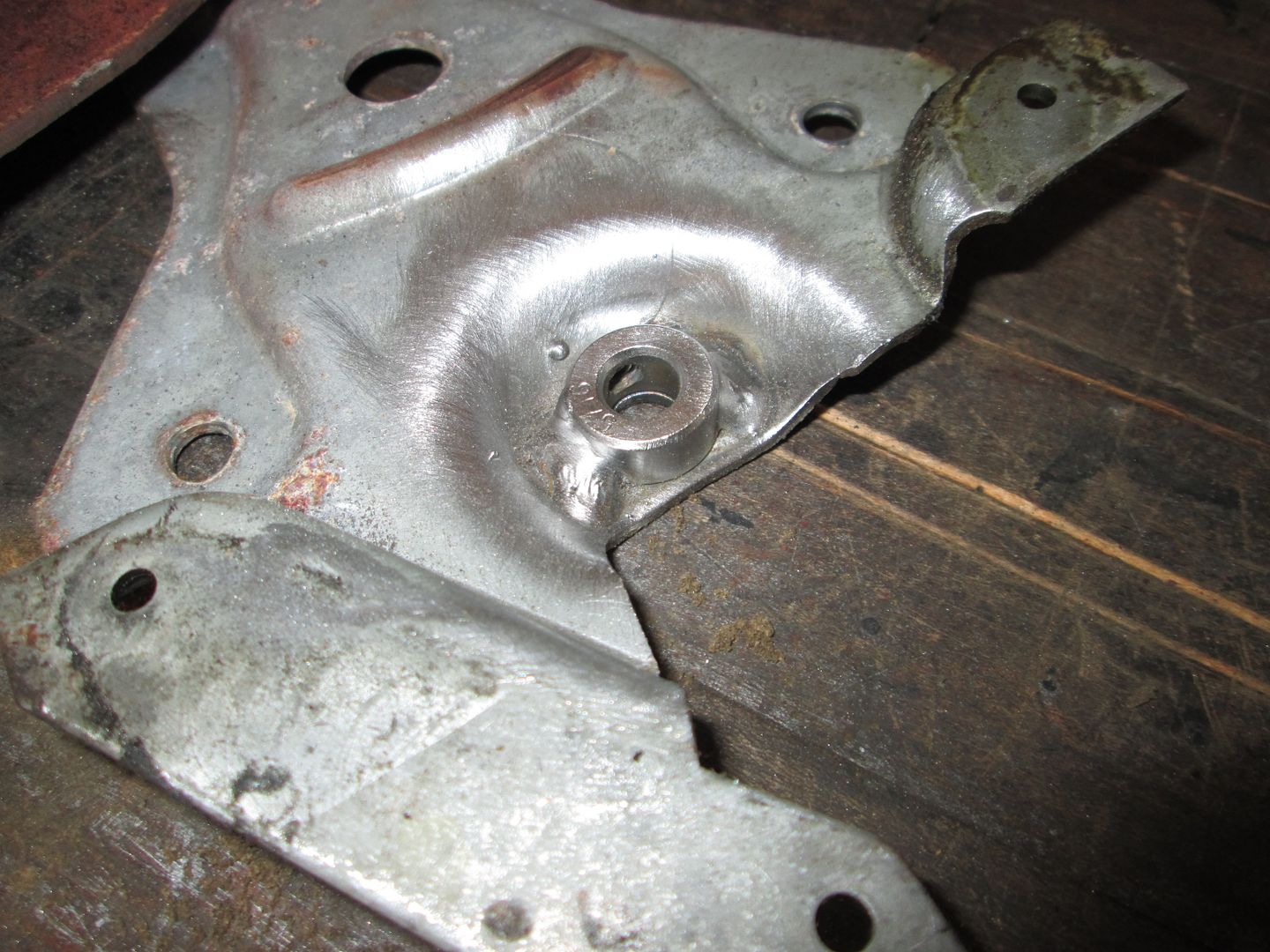 To make it easier to reinstall the bracket (and not use 4 rivets), I welded some 1/4" nuts to the backside of the bracket. The bolts need to be 1/2" or less to clear the motion of the scissor cam.