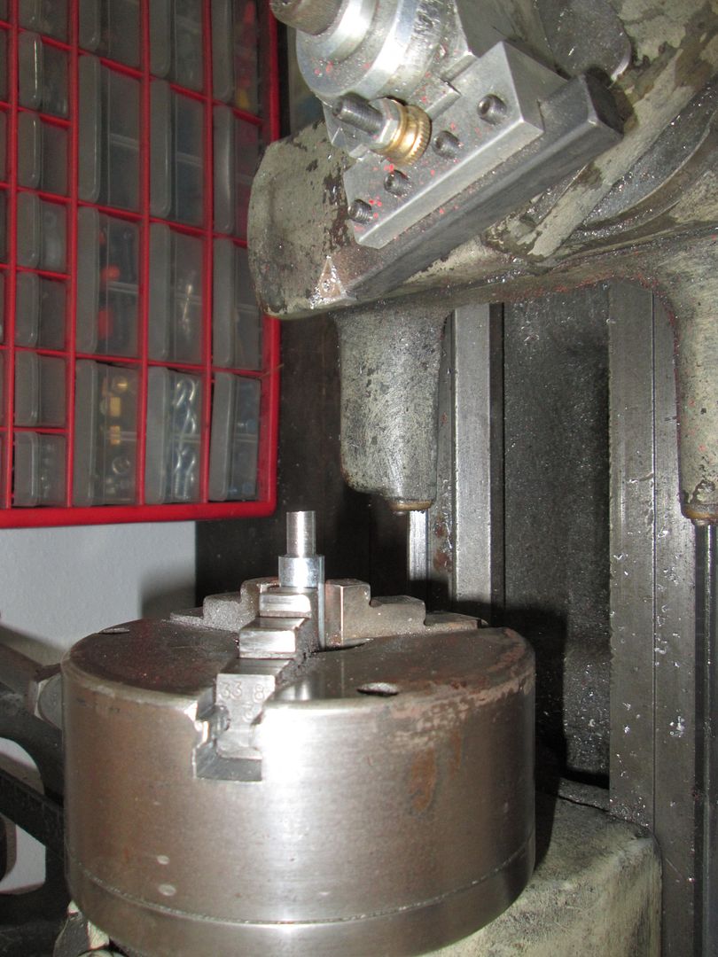 So I cut the new one to be about 3/8" longer than the old one, marked where the stepped profile needed to be, then chucked it in the lathe: