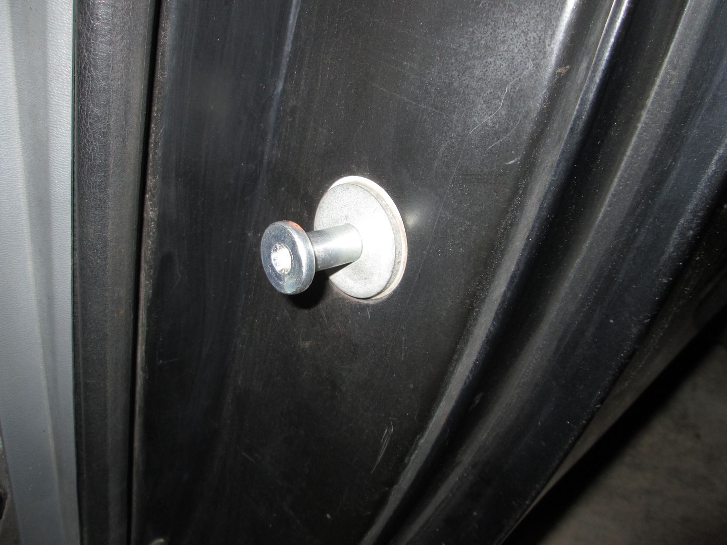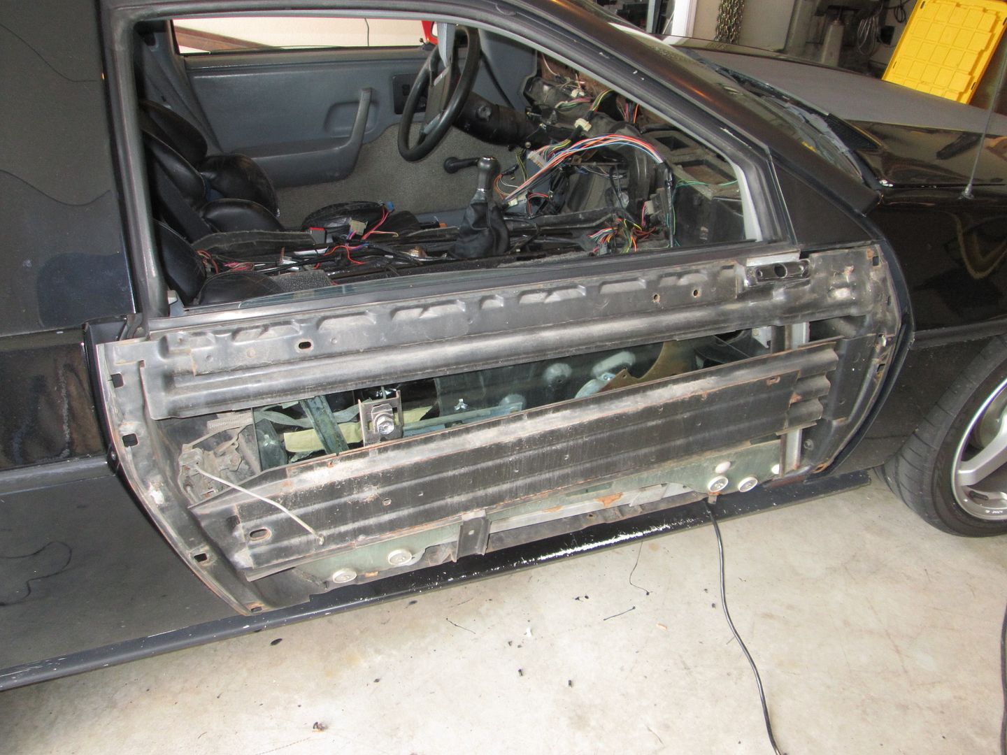 From experimenting on the driver GT door in the past several weeks, I decided it was much, much easier to do the work with the outer door skin off, so off it came.
