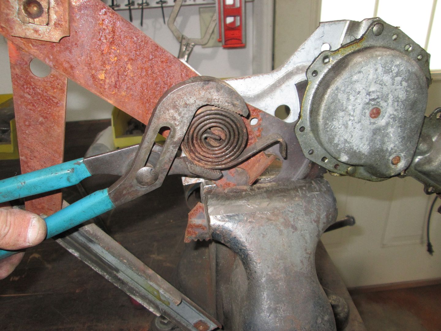 To remove the wrap spring, I just gripped it with the channel locks and moved the end from the stop. Its good to take a picture so you know how it goes back on: