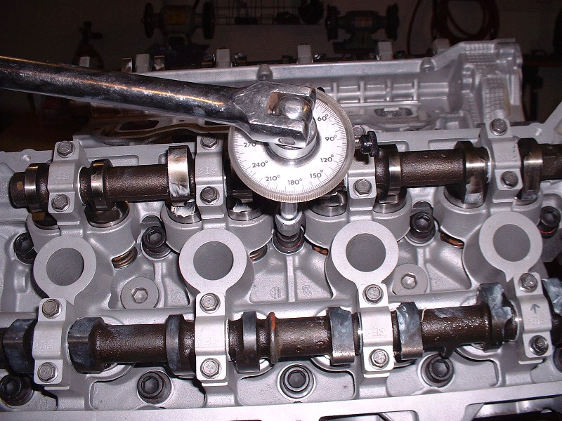 Here’s a quick pic of me using the angle meter again while torquing the head bolts on. For these, you start by applying 22 lbft of torque with a torque wrench to all twenty bolts in a particular sequence and then recheck them a second time. Next you rotate all twenty head bolts in sequence a further 60* one after the other, then go around again for another 60*, and then a final 60*. It takes a bit of time to set up the meter each time and you really don’t want to be in a rush or be disturbed while doing this and lose track of where you are in the sequence. It’s best if you lock yourself in your garage and let no one disturb you until it’s done.