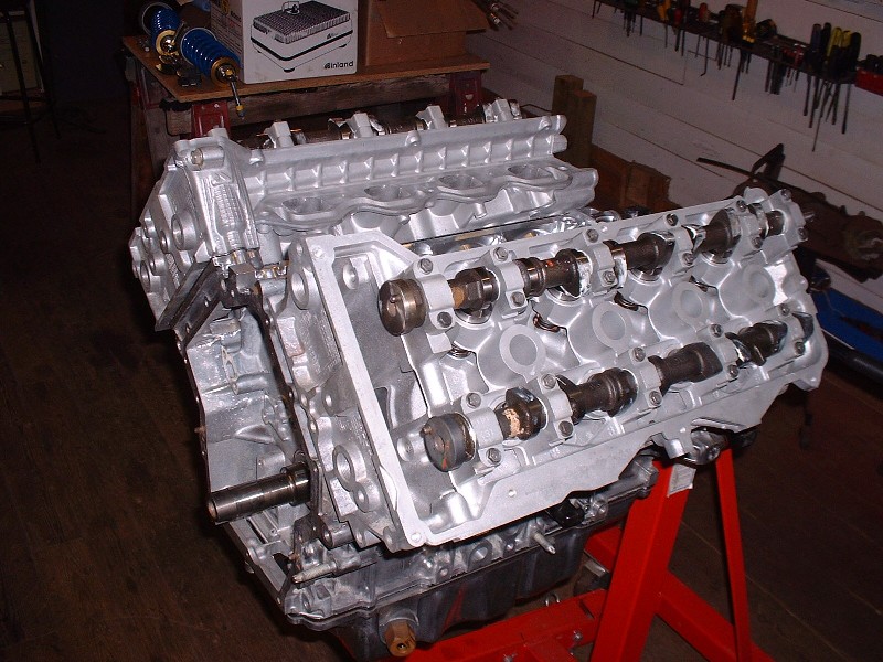 And here’s a close up of the cams. Notice that the cam journals ride directly on the casting, without bearings per se. If you’ve been following my thread since the beginning, you’ll remember that I had to replace a number of the cam bearing cap bolts due to them having been over-tightened at some point in their previous lives and therefore significantly stretched beyond their yield point… two of them to the point of fracture. Luckily I was able to steal a couple from my spare-parts engine.