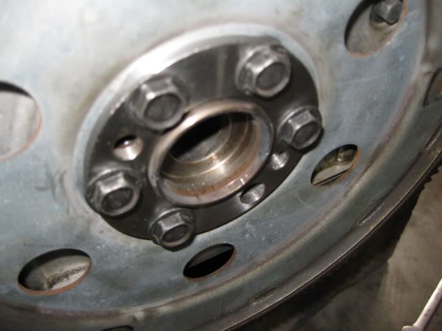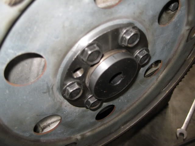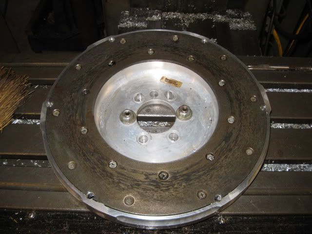 The flywheel was tapped for 3/8-24 bolts and then a 3/4" counter bore was done for all the holes.