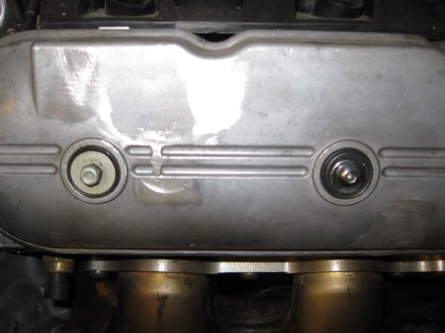 My stainless steel button heads for the valve covers had been MIA for a couple of weeks, but I found them today (in my LS4 parts box of all places). The factory spacer/seal sleeve needed to be retained, so I cut the head off the old valve cover bolt.