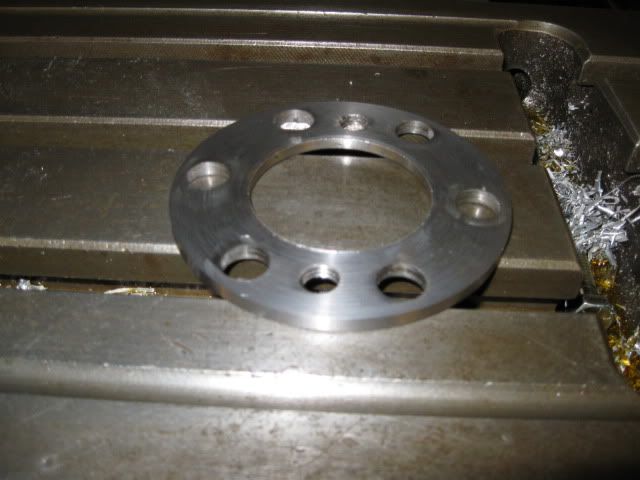 You can't mill the crank side. The original spacer has a recessed pocket for the crank flange to slide into, then it steps down to allow for the crankshaft flange extension on the other side. The crank flange is somewhere around .380" deep and the spacer was .417 thick (not counting the flange extension). If you take material off the back side, the crank flange will bottom out before the spacer is seated. Take it off the front side and there will only be a couple of thousandth's of material left...
