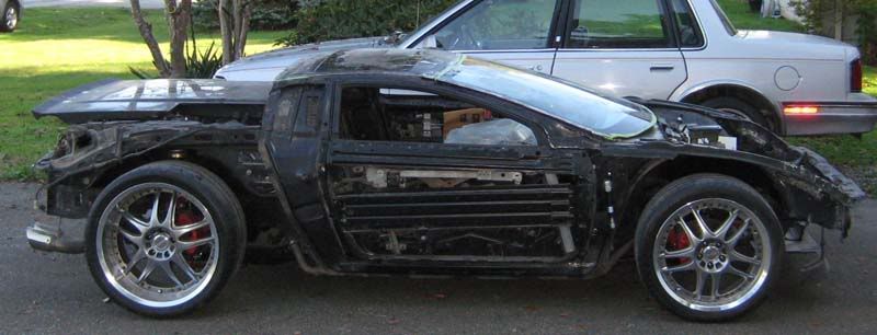 Looks sweet even w/o the body, hehe. The car sure does look low. I like the front windshield too. |