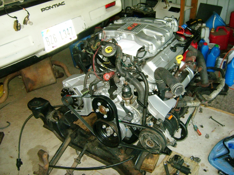 I am gonna have to remove all of the alternator brackets and remove all of the engine mount bolts. Then I can raise the engine upwards. I cant get in there to add the top two motor mount nuts with the 3.4 oil pan. Must be deeper there. Oh well. I didn't have anything else to do tomorrow morning. After I get these two niuts on , I will be able to install the muffler and tail pipes back onto the engine.
