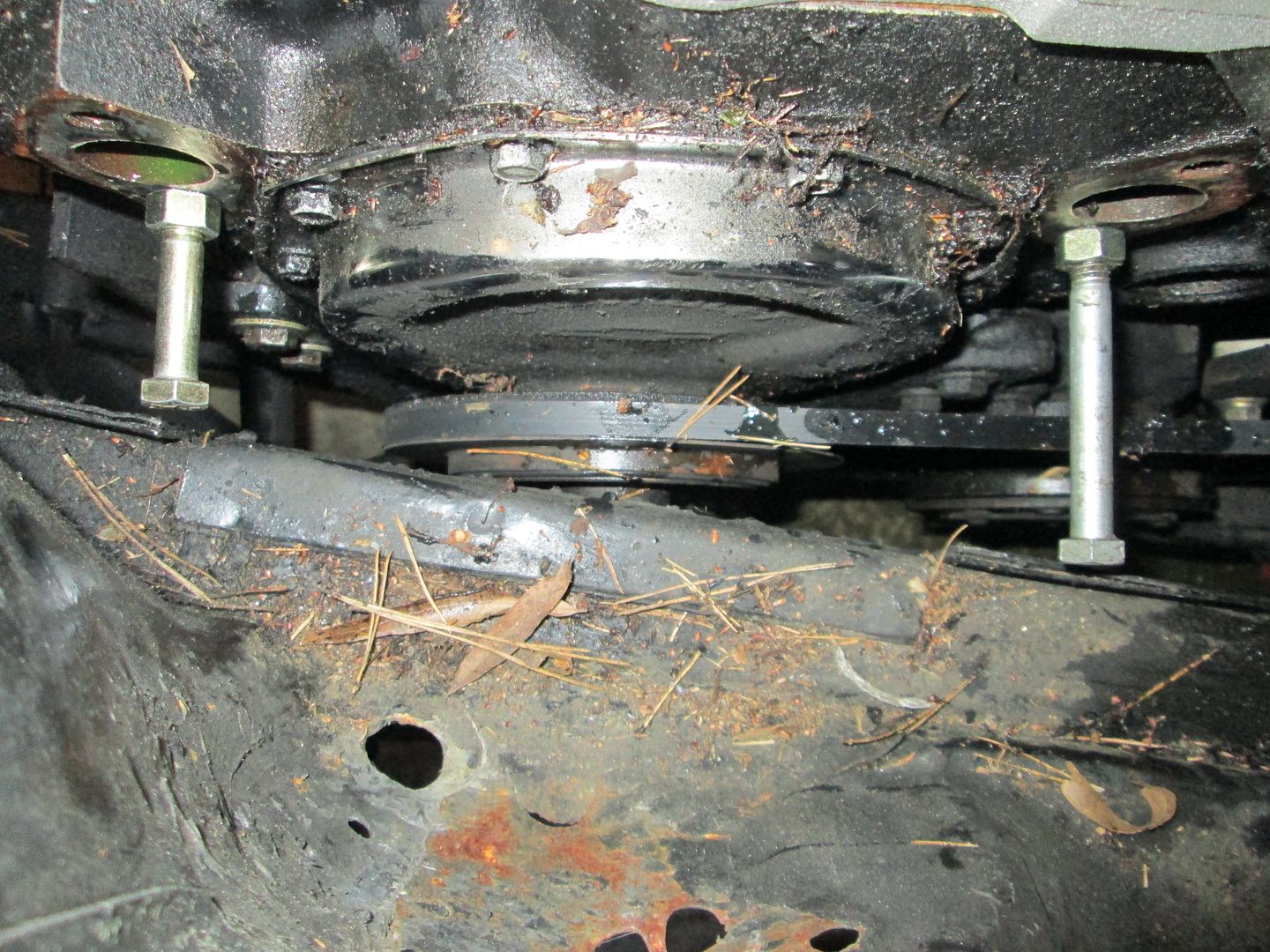 Prior to removing the engine, I added 2 bolts that show the clearance to the frame rail: