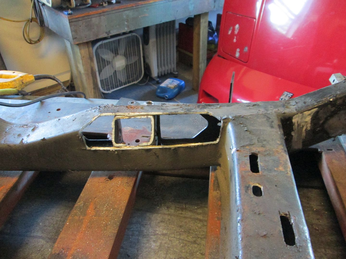 The chassis already has a frame notch large enough for the serpentine conversion. It is actually a little too large, so I will add some metal back in to make it smaller and more visually appealing: