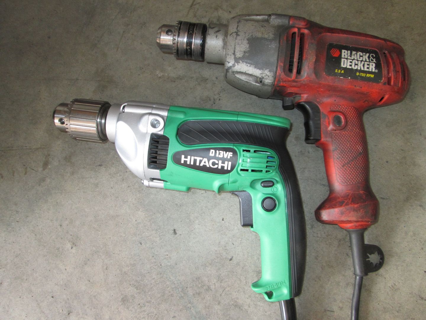 One of the casualties of this project was my 1/2" drill. Can't remember how old it is, but I think I got it about the same time as my dewalt saws all - probably 15 or so years ago. I have abused it relentlessly and it finally stopped working. I have been abusing a 4 1/2" Hitachi angle grinder for 5+ years and quite happy with it (went through several dewalts and others before this one), so I decided to tryout their 1/2" drill. Time will tell how this one holds up, but it spun the 1 3/8" hole saw though the base in a couple of spots.