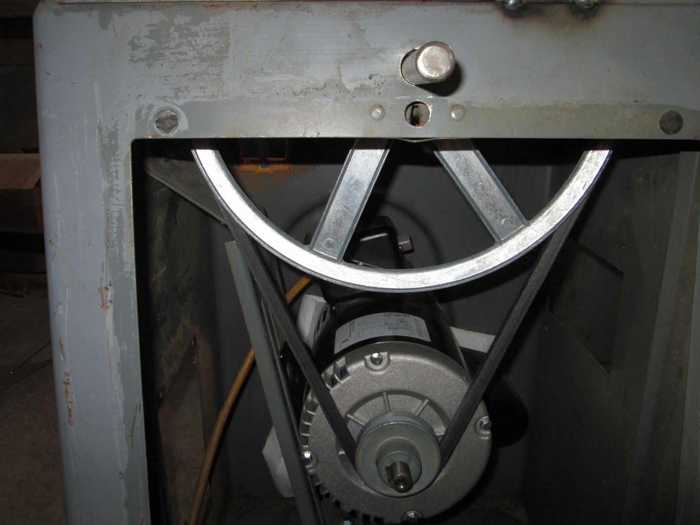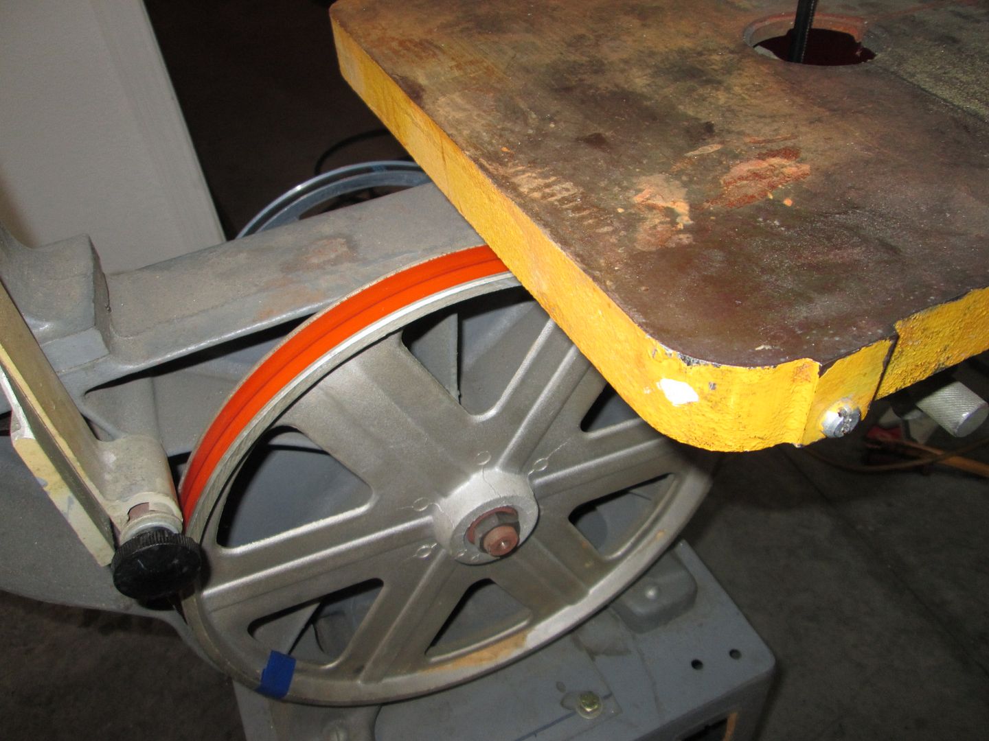 New 120V motor, bi-metal blade, poly tires for the wheels, fabed up the jack shaft, assortment of pulleys, a little trim work on the base to fit the pulleys, and used a LS4 accessory pulley as a tensioner!... I still need to fab up a new belt guard, get the filler puck for the center hole around the blade, and I am waiting for my new start/stop switch to show up.