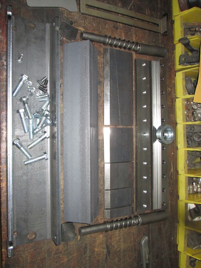 I already have a few modifications I want to make. ** Drill the top portion of the slide shafts so I can pin the brake in the down position to make it easier to install and remove from the press. ** I have several scraps of 5" x 18" 1/2" plate and thinking about welding 1 or 2 of them to the underside of the base as well as welding in some positioning tabs to lock it into the c-channel base. Or drilling holes in the side clamp tabs and through the uprights on the shop press to bolt it in place. ** Also not a fan of the lock collar on the top (too much slop), so I might make something a little tighter and taller. ** Buy or make some inserts for the base to make tighter bends...