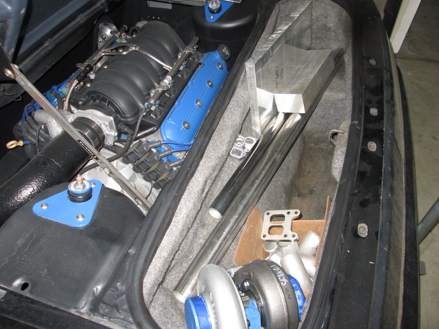 I think I will cut the bottom of the trunk, then the turbo, intercooler, and all associated plumbing will be hidden and not clutter up the engine bay.