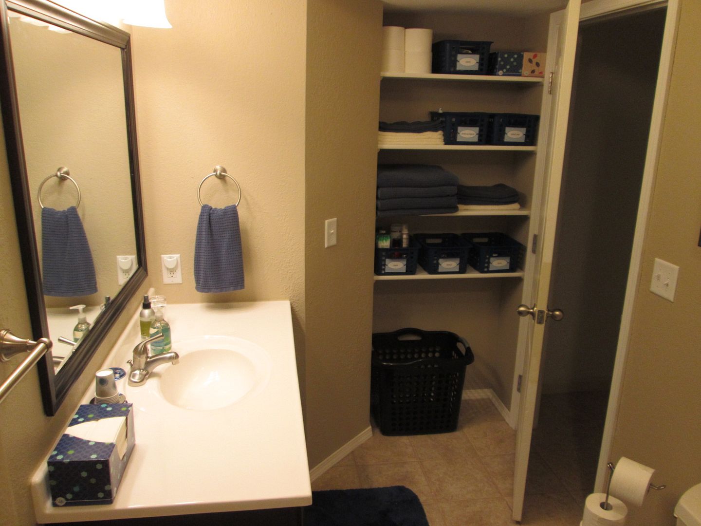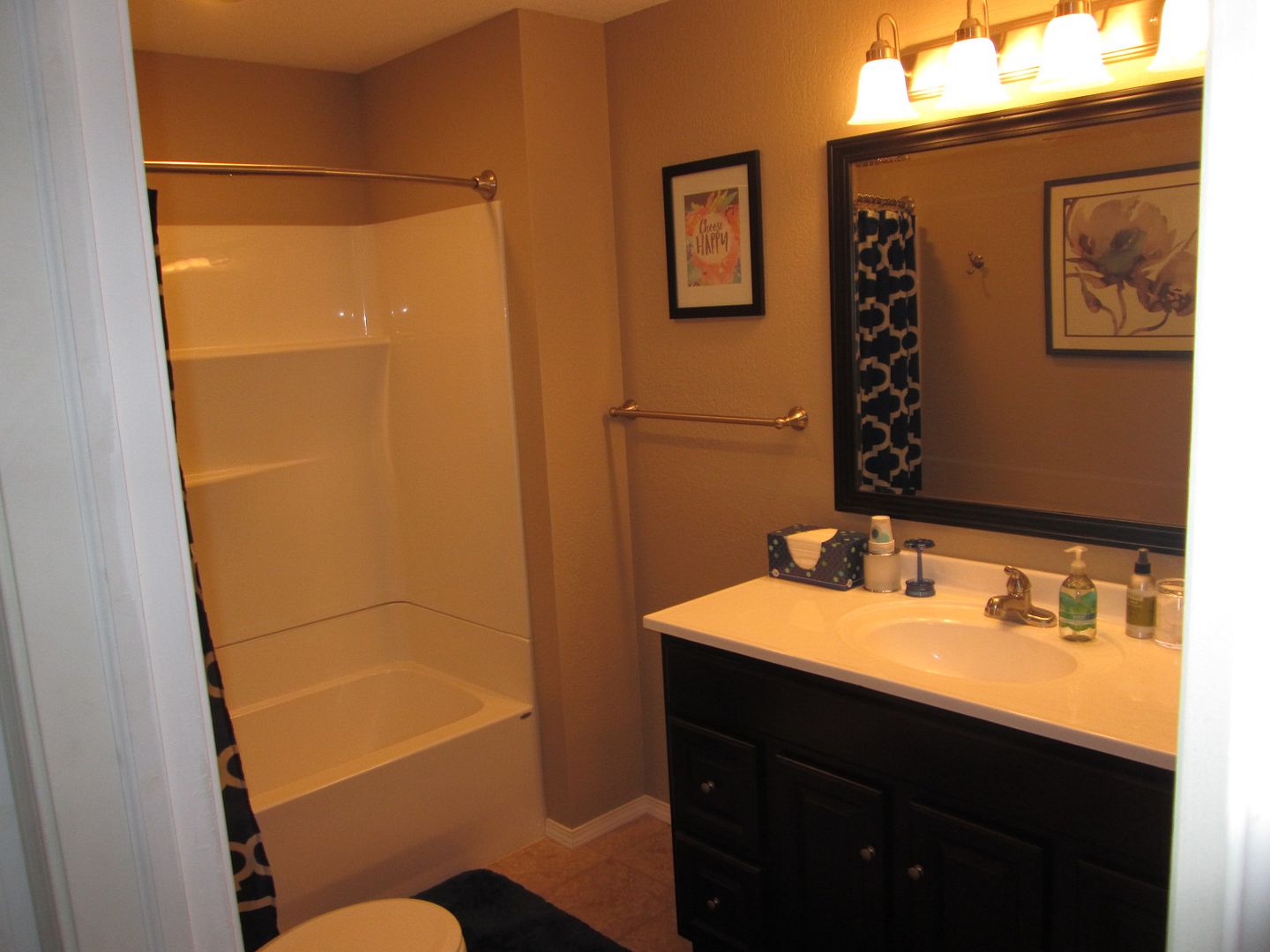 From Thanksgiving until 2 weeks ago, most of my free time was spent finishing our basement bathroom. When we purchased the house, the bathroom was studded in and had all the drains installed below the concrete. We had a contractor run all the copper lines, install the bath tub, wire the electrical boxes for the lights, and install the drywall and tile. I did all the painting, caulking, grouting, hooked up the lights, installed the toilet, vanity, sink, mirror, towel racks, pictures, and built in shelves, and all the trim... My wife put the rest of the towels and supplies in there. So now when guests stay in the spare basement bedroom, they have their own full bath!