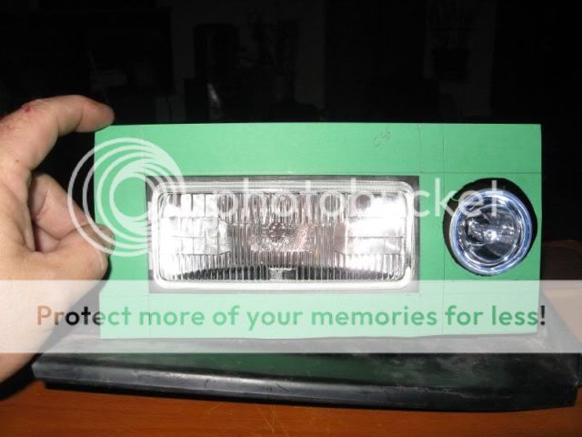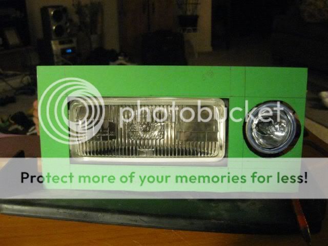 The template is a "rough outline. I will radius all the inside corners to fit the light better and the round hole for the driving light will be - well - round. I'll use a whole saw to cut the hole. There will also be "sides" bent back to cover each side and will attach at the stock points on the Fiero bucket.