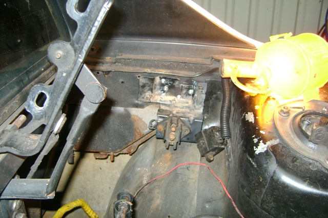 Found a problem while working on wiring in the C500. The trunk hinge torsion bar is hitting the forward valve cover: