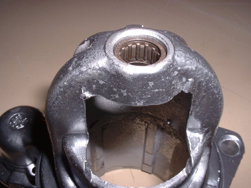 With the innards removed, I was able to examine the needle bearing in the starter snout and decided it needed to be cleaned and re-greased. I used varsol to desolve to old grease and spun it dry with shop air then used a Q-Tip to re-grease the needles. Here’s a close-up of the little guy after I cleaned it but before I decided to remove it and grease it properly.