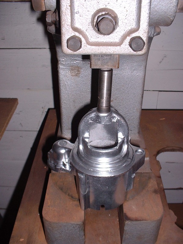 To remove and reinstall it, I used a small arbor press which made things easy, but I'm sure you could used a punch and hammer judiciously. In this picture I’m pressing it back in after cleaning and re-lubing it.