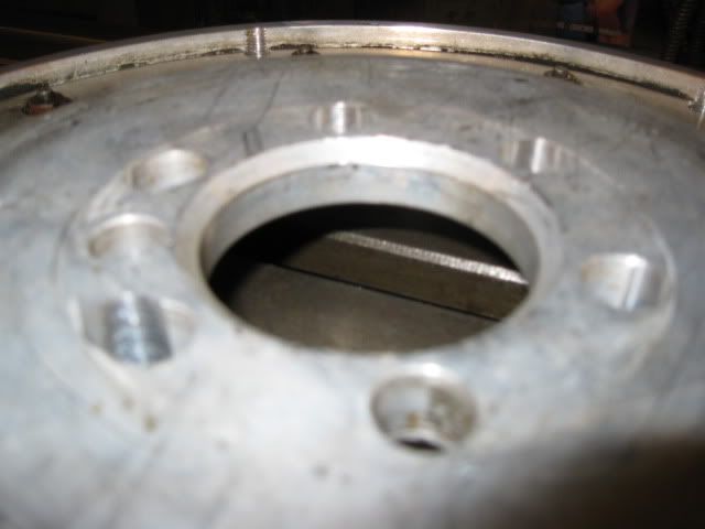 You can't mill the crank side. The original spacer has a recessed pocket for the crank flange to slide into, then it steps down to allow for the crankshaft flange extension on the other side. The crank flange is somewhere around .380" deep and the spacer was .417 thick (not counting the flange extension). If you take material off the back side, the crank flange will bottom out before the spacer is seated. Take it off the front side and there will only be a couple of thousandth's of material left...