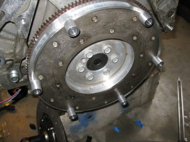 I was able to rough mockup the flywheel/clutch/pressure plate assembly today. The spacers are 1" in length and with the recesssed boss, they are .865" above the clutch face on the flywheel. Stock is .820" and I will probably be shooting for .750" once I mill them down. But they are close enough to start the mockup process:
