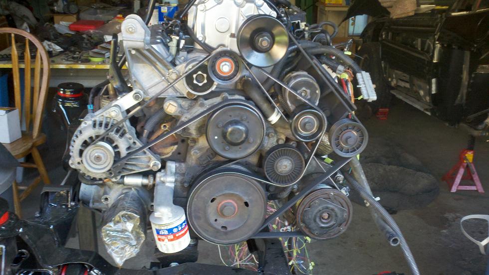 Well my formula just sprung a coolant leak. At first I thought it was just the pump seal, but after looking at it closer it looks might be the timing cover seal under the water pump. Its obvious where its leaking from, defiantly a seal. Wow, more work. Oh and while i was in there i found the AC belt had almost sawed through the lower coolant hose also.