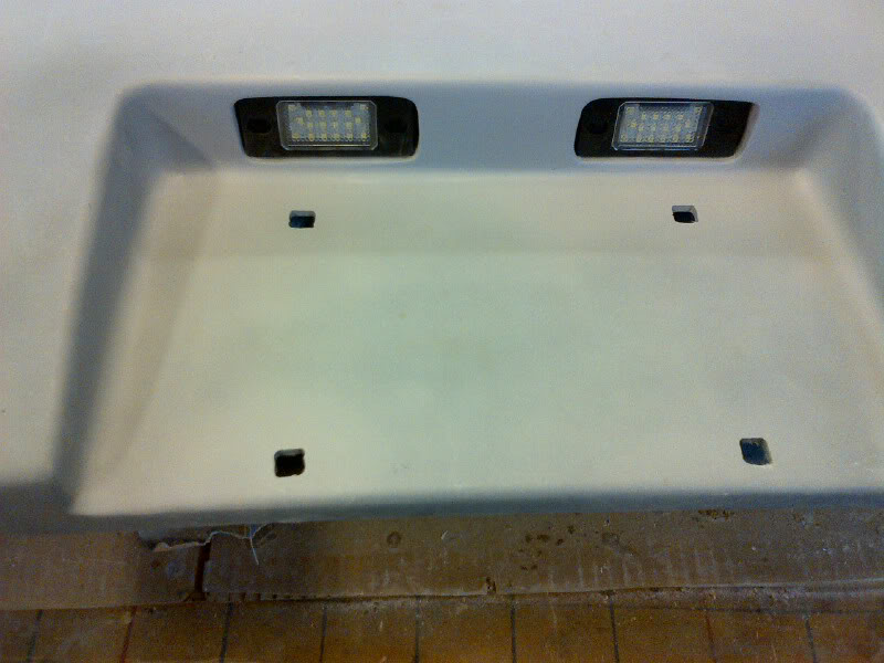 These are the license plate lights - from a Porsche Cayenne via China for LED versions. Another eBay special. I didn't want the lights to show so They're recessed in about 1/4"[This message has been edited by artworks (edited 07-15-2017).]