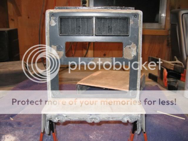 I did some fit up of the AC surround/shft cover today and realized that I need to build up the lower front edge of the surround quite a bit. Even though the AC surround is tappered in from the dash to the shift console, the taper is very subtle. With the vinyl covering removed, it did not occur to me until I put the shift console on the old original AC surround. When I set the shift console on the AC surround that I am working on, there is a big gap. When the AC surround and the shift console fit together, I want the seam to be very tight. It will take a lot more glass work to get it right. And I thought I was getting close.........