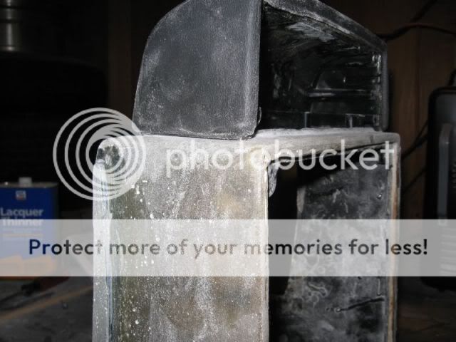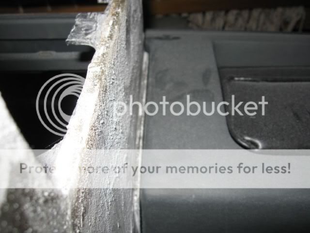 So anyway, last night and this afternoon, I did some more build up of the AC surround so I could get it to match up to the shift console. It was an experiment that turned out good. The bottom sides of the AC surround are tappered in and I needed to square it up to fit up to the shift console. So I went to the Hobby store and got some balsa wood and shaped up a couple of wedges to fill in the taper. I glued these to the surround and then layed several layers of "staggered" mat basically making a "wedged" shaped glass section on the lower part of the surround. I managed to get the top and one side layed last night and today I got the other side layed up. Once it was cured, I went after it with the Dremel and trimmed it up. I looked like a snow man when I was done - covered in fiberglass dust.