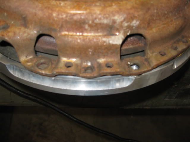 This was the first clutch setup I looked into, but it will not work with my fidenza flywheel due to the pressure plate bolt pattern on the pressure plate and the machined edges of the flywheel. In this picture, one of the pressure plate bolt holes lands on the full size portion of the flywheel edge, but the other one is in the clearanced portion. So I had initially discarded this flywheel setup.